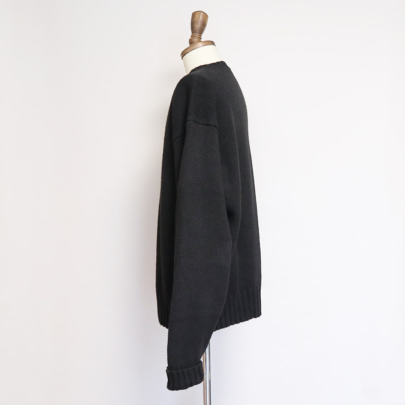 袖口、裾、首元は幅の広めのリブ編みになっていて、少しリブの長めの作りです。
