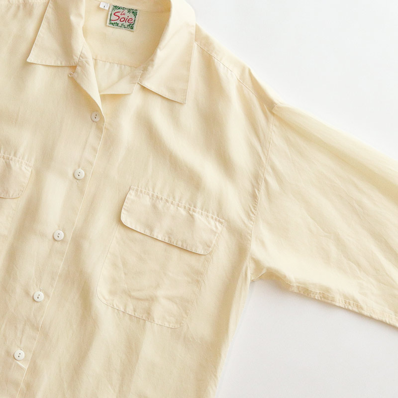 形はシンプルなオープンカラーシャツで、ボックスシルエットのゆったりとした形のものです。