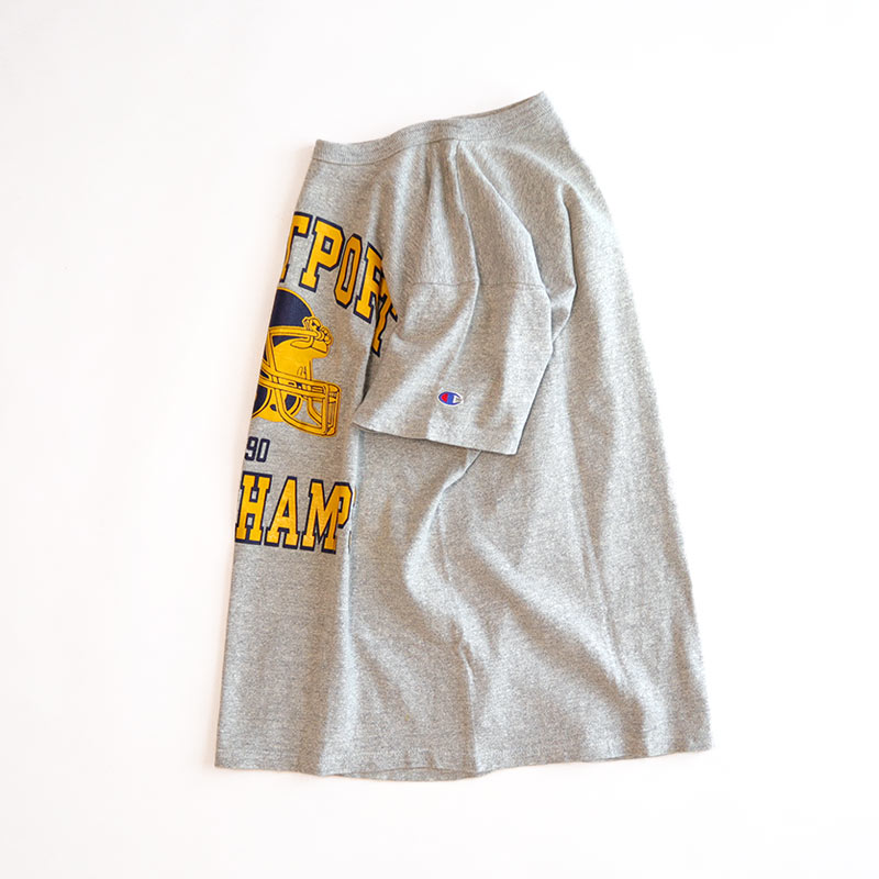素材はこの年代の Champion ではおなじみの、88%コットン、12%レーヨンの杢グレーのやわらかい生地感のものが使われたものです。