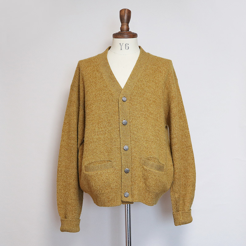 少し杢がかったマスタードベージュが、オールド感あり、雰囲気あるカーディガンです。