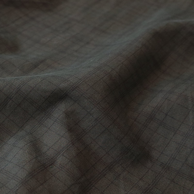 薄っすらチェック柄で、また、光の当たり具合で少し色が変わるタマムシのような光沢感のある生地が使われています。