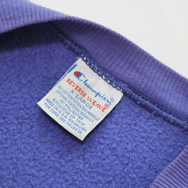 "REVERSE WEAVE" とは、通常の良くあるスウェットのタテ織りを横向きに変え、スウェット特有のタテ方向への縮みを解消し、さらに両脇にリブを付けることで、横への縮みも減らしつつ、運動性能をアップさせ、さらに着心地も良くすることに成功した Champion の特許の仕様のもので、Champion のオリジナルのものです。