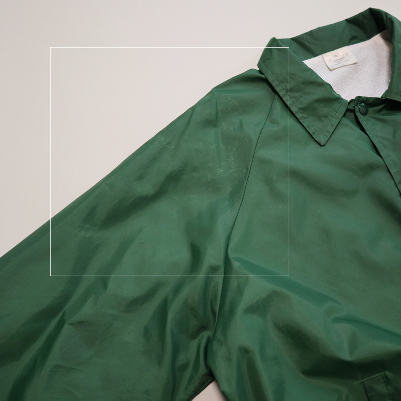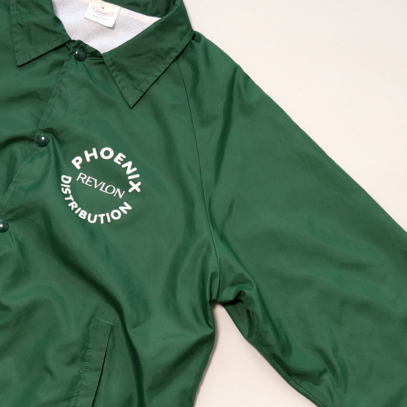 派手過ぎないグリーンに白色のプリントが映える、良い色合いのコーチジャケットです。