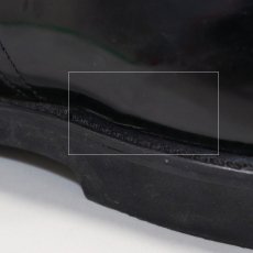 エナメルレザーが使われているシューズで、外羽根でプレーントゥのシンプルなデザインの物です。