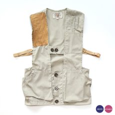 形は、丈の長さがある形で、右肩にスエード素材のガンパッチの付くシューティングベストらしい形です。