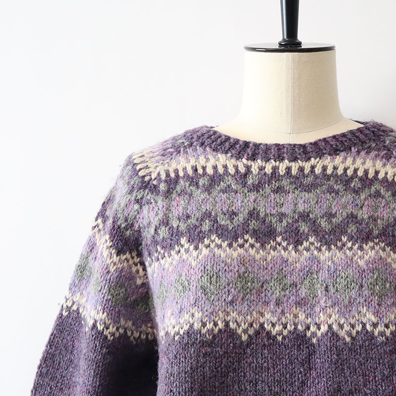 紫と白の配色がとても温かみのあるセーターです。