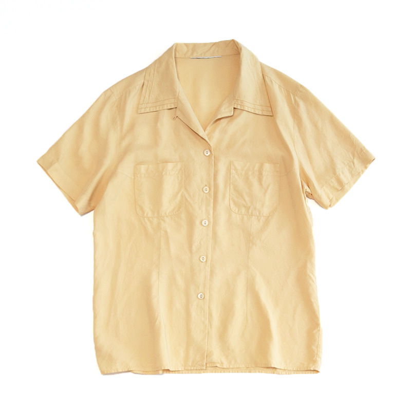 UNKNOWN BRAND SILK S/S OPEN COLLAR SHIRT