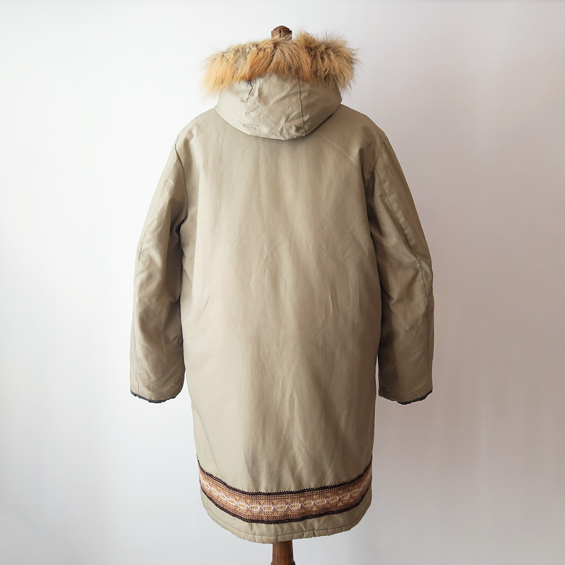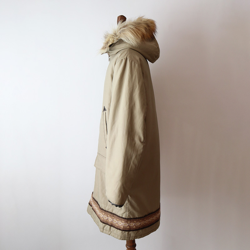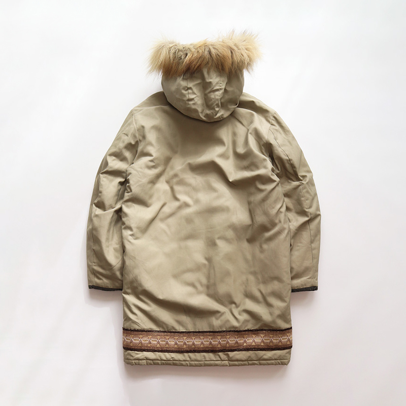 裾には、エスキモーコートなどにもみられる飾りの柄テープが縫い付けられた豪華な作りです。