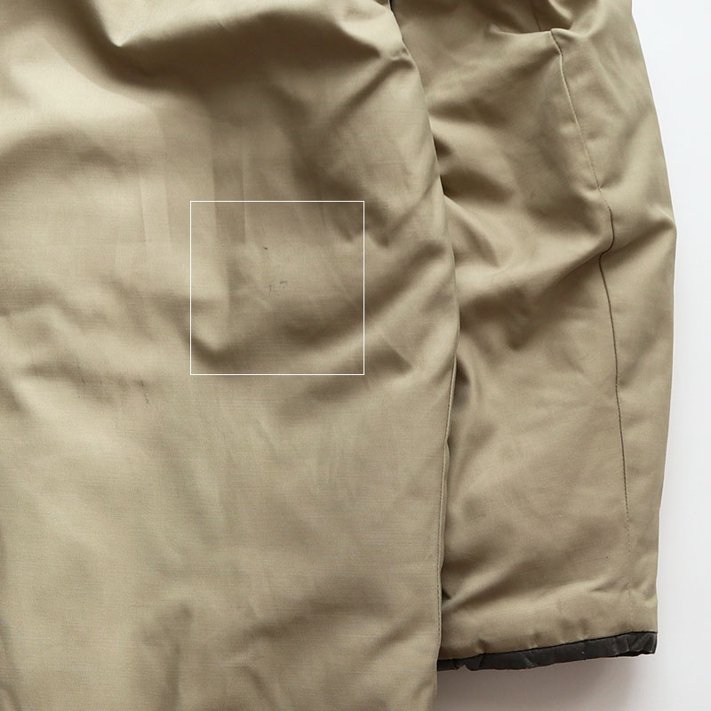 | Condition | USED 使用感あり。 袖口に少し擦れ。 背中左アームホール付近に小さな汚れ。 後ろ裾に汚れ。右腰に汚れ。しかし、その他、目立つダメージなく、古着慣れした方であれば問題ない程度です。 |