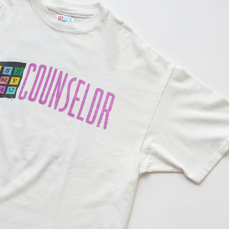 90's Hanes COTTON W-PRINT S/S TEE "FISH CAMP TAMU COUNSELOR" "MADE IN USA"