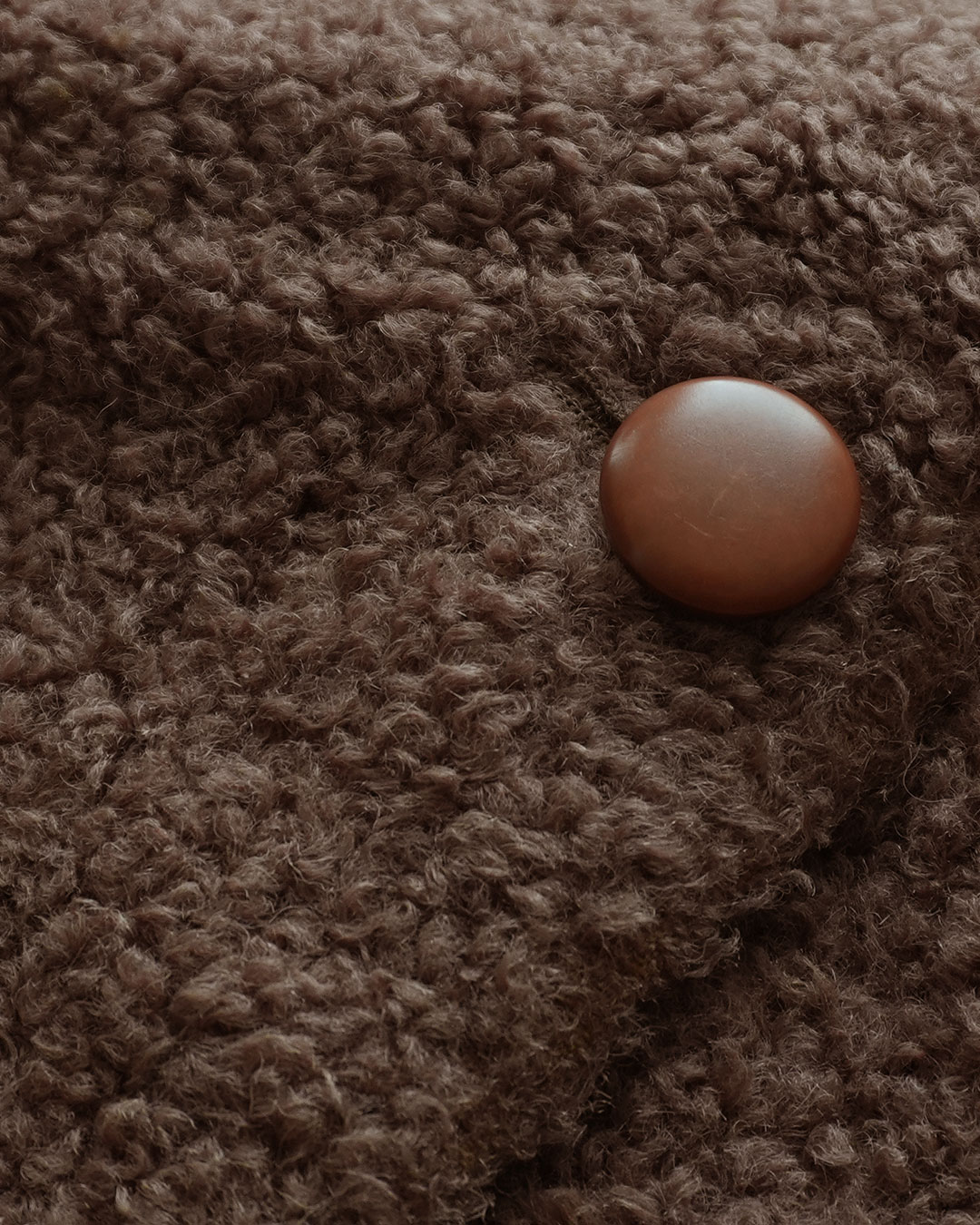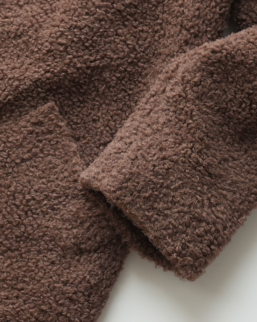 素材は "LLAMA CURL" とあるので、高級素材としても知られる、ラマの毛が使われたものと思われ、カールしたふんわりとして柔らかい毛におおわれた暖かそうな生地感の物です。