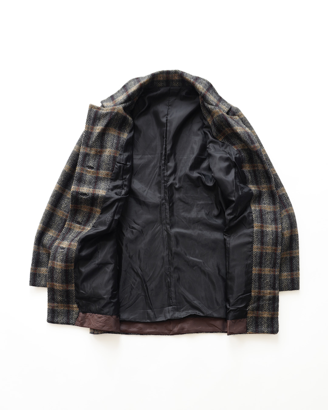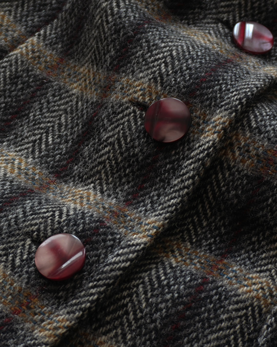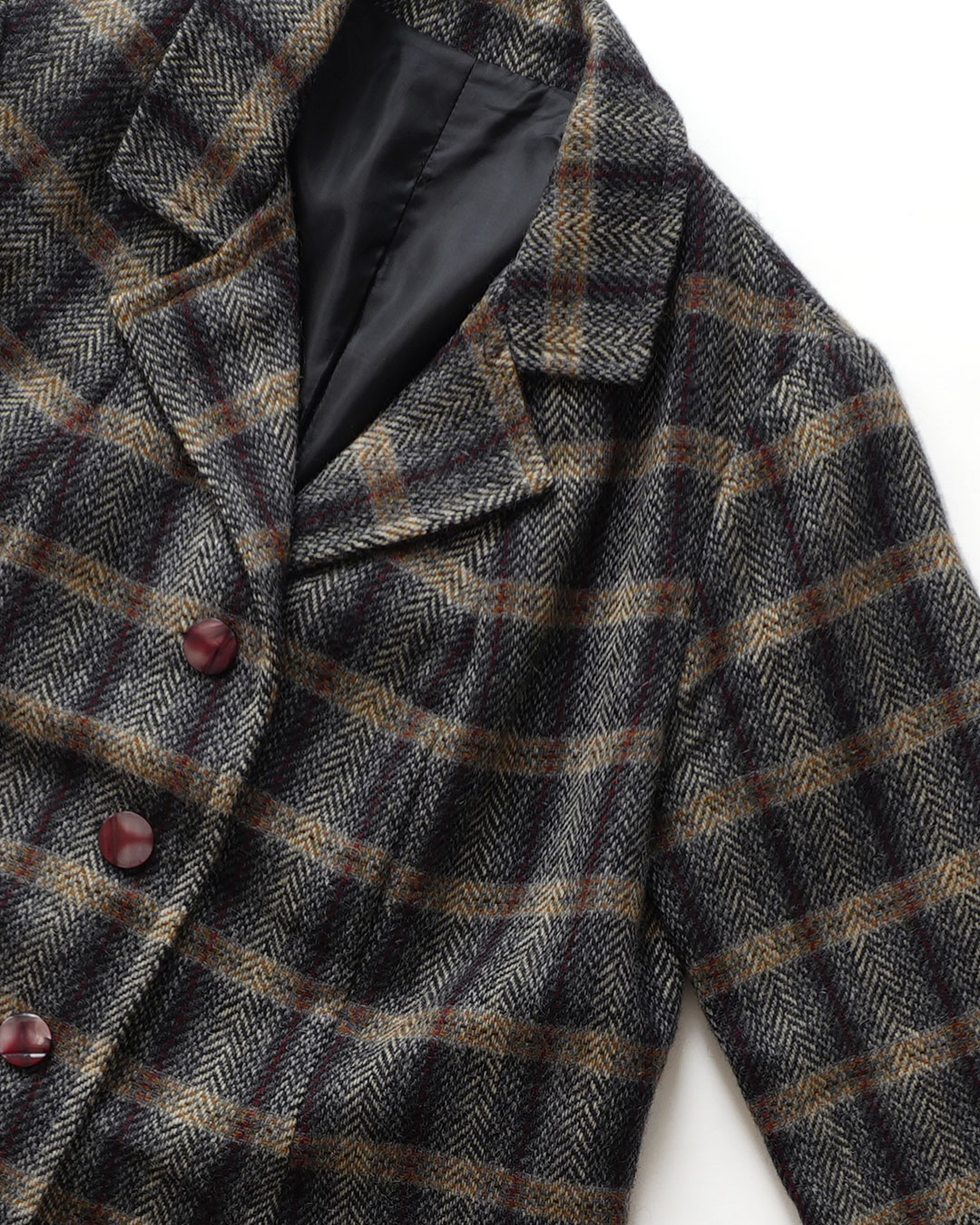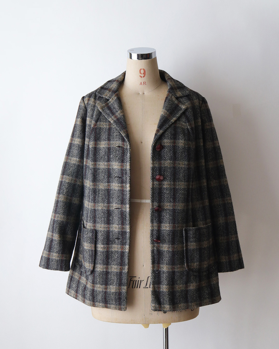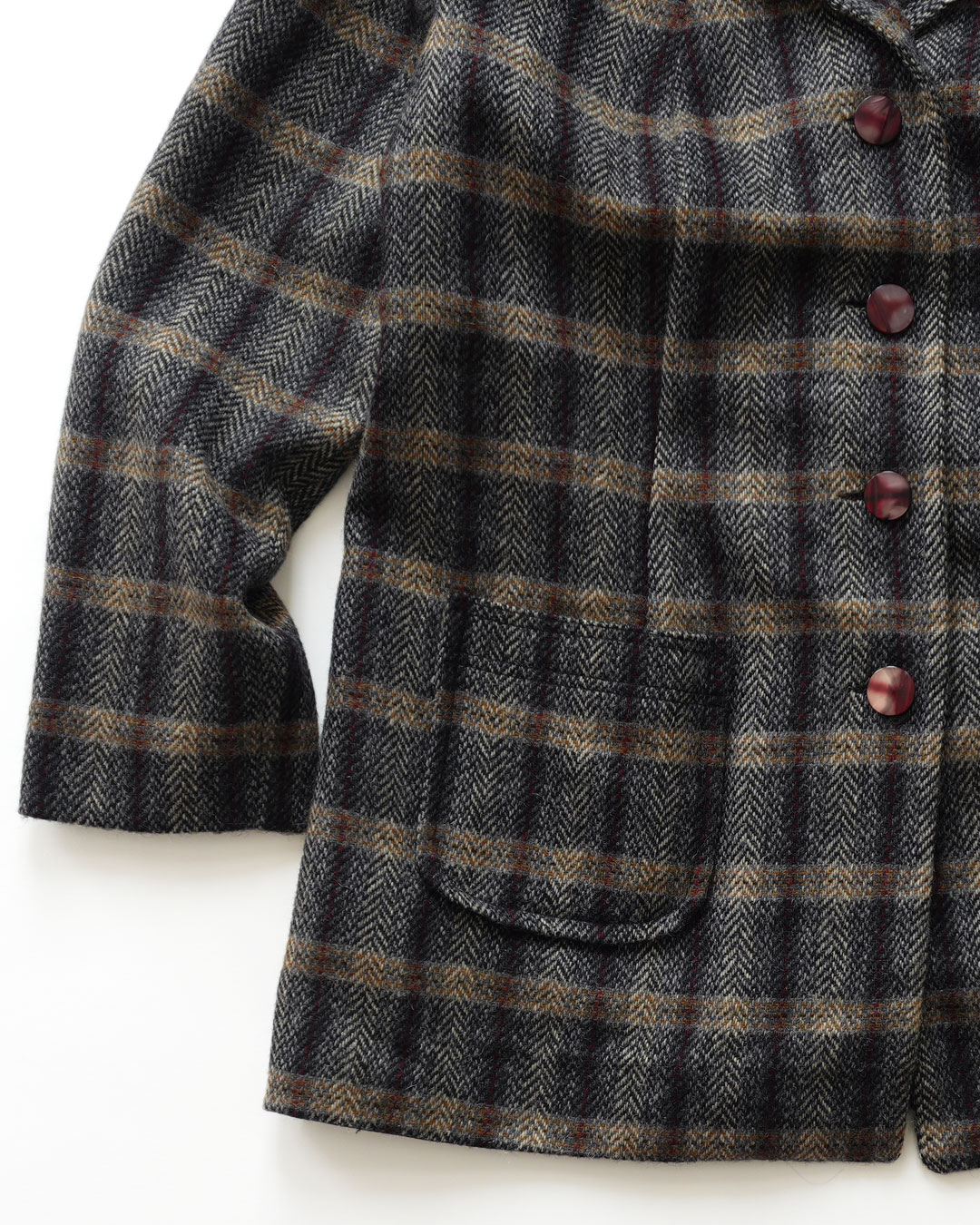 UNKNOWN BRAND WOOL HERRINGBONE TWEED CHECK 4B JACKET