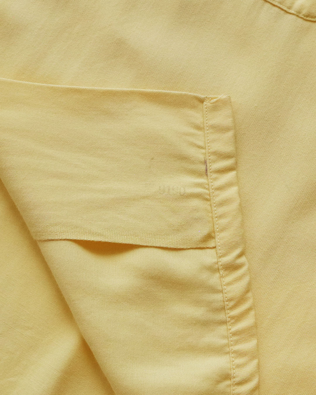 派手過ぎない落ち着いた黄色のボディーに、赤と緑の刺繍が良い雰囲気の良いシャツです。