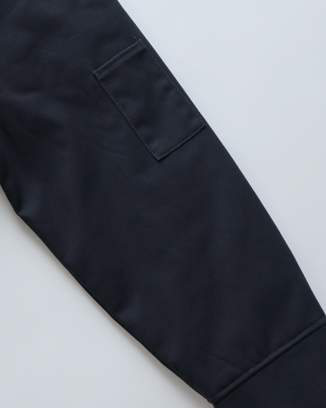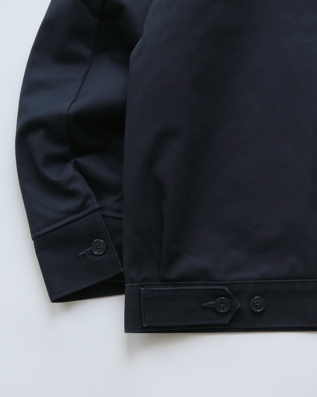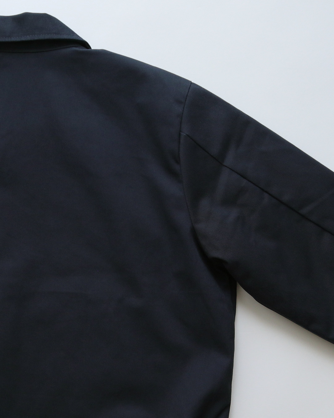 素材はポリエステルとコットンの混紡の厚手の綾織りの生地で、ガサっとした手触りのしっかりとしたワークウエアーらしい生地感の物です。