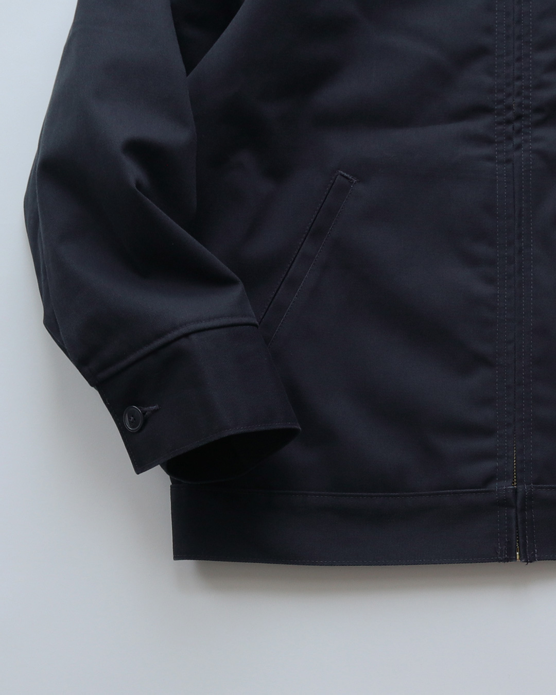 形はジップアップのシンプルなワークウエアーらしい形で、ボックス型のゆったりした形です。