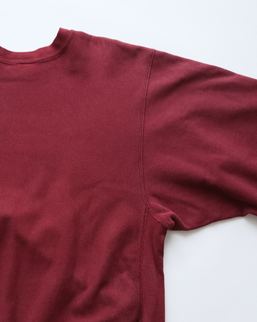 "REVERSE WEAVE" とは、通常の良くあるスウェットのタテ方向の編み地を横向きに変え、スウェット特有のタテ方向への縮みを解消し、さらに両脇にリブを付けることで、横への縮みも減らしつつ、運動性能をアップさせ、さらに着心地も良くすることに成功した Champion の特許の仕様のもので、Champion のオリジナルのものです。