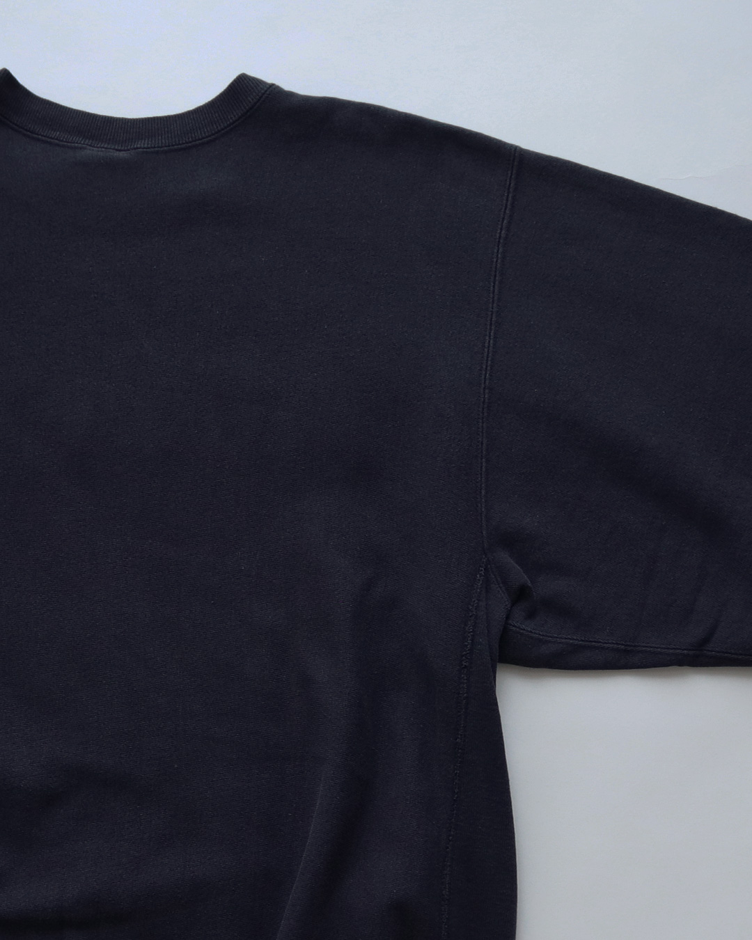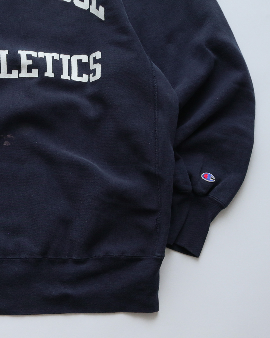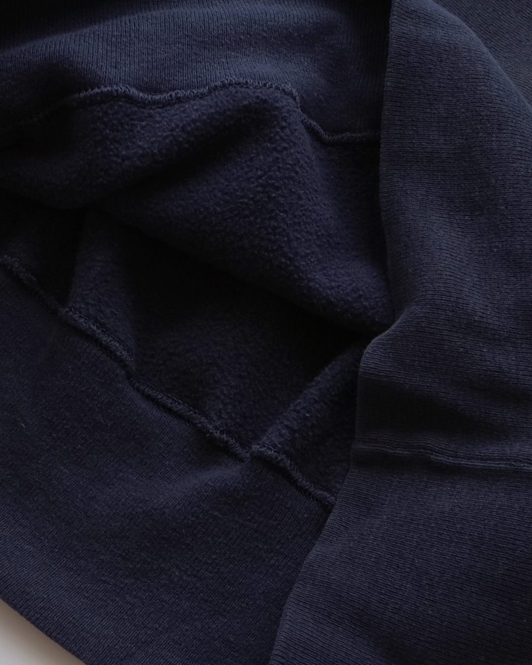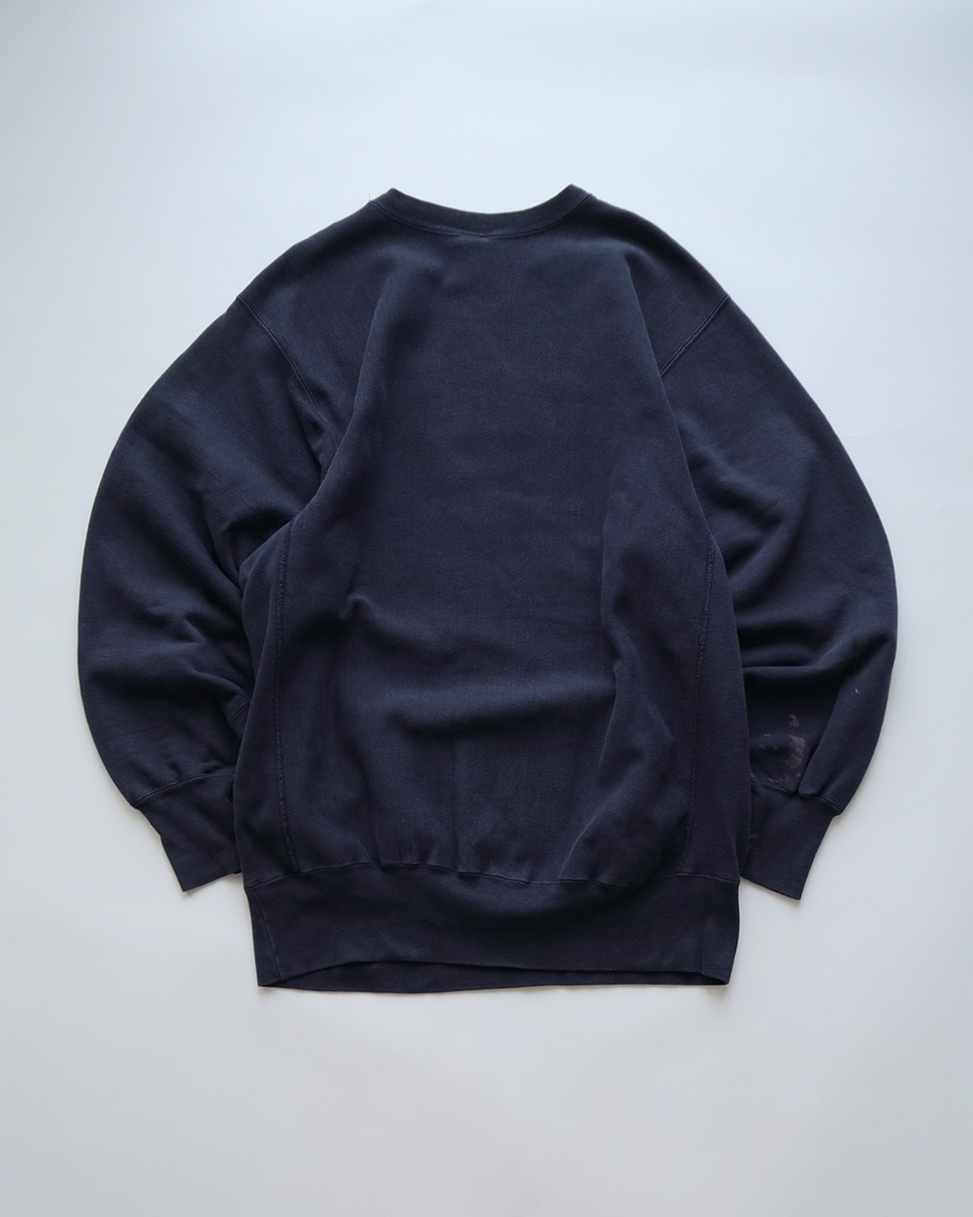 "REVERSE WEAVE" とは、通常の良くあるスウェットのタテ方向の編み地を横向きに変え、スウェット特有のタテ方向への縮みを解消し、さらに両脇にリブを付けることで、横への縮みも減らしつつ、運動性能をアップさせ、さらに着心地も良くすることに成功した Champion の特許の仕様のもので、Champion のオリジナルのものです。