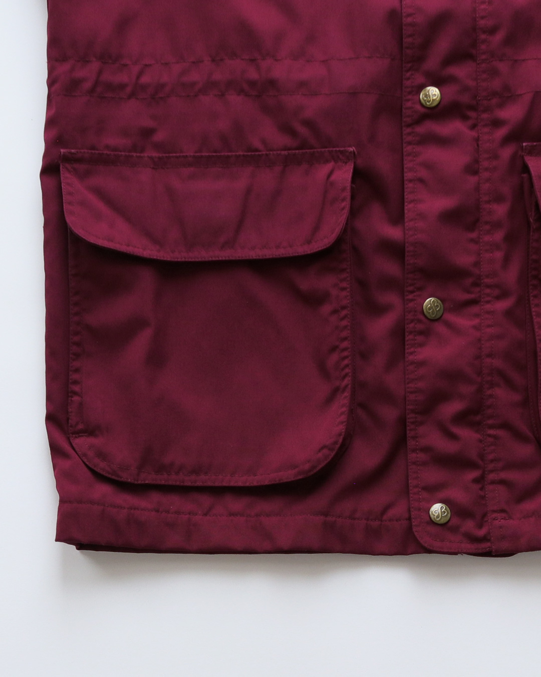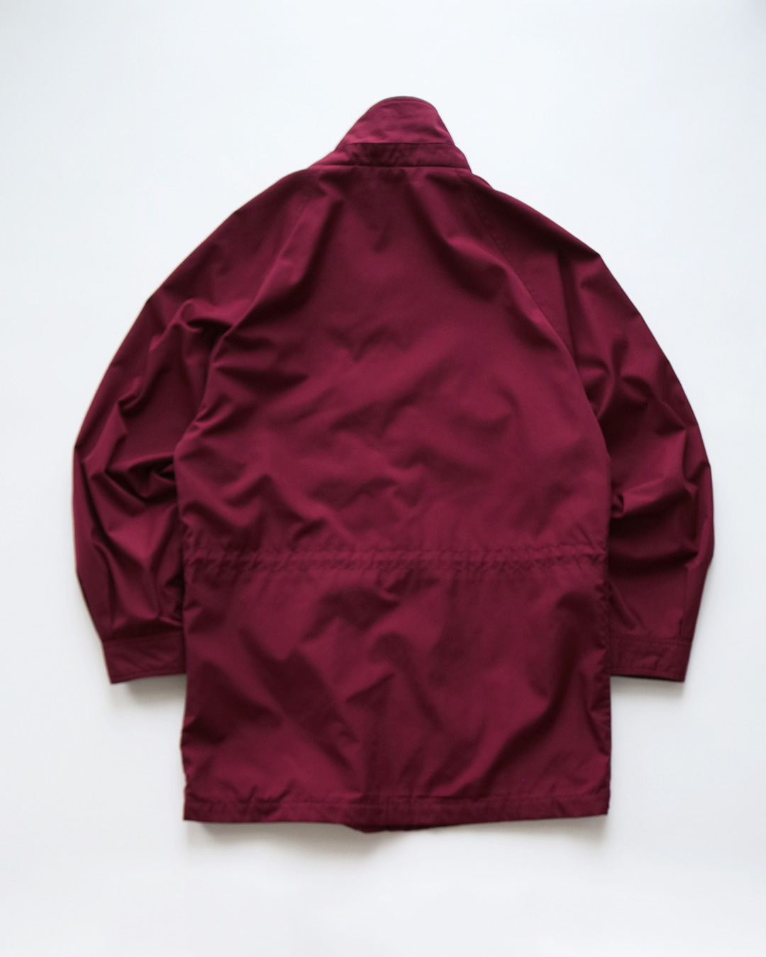 形は定番のマウンテンパーカーのフードの無い形で、ラグランスリーブで、左胸ポケットがマップポケットになった定番的スタイルの物です。