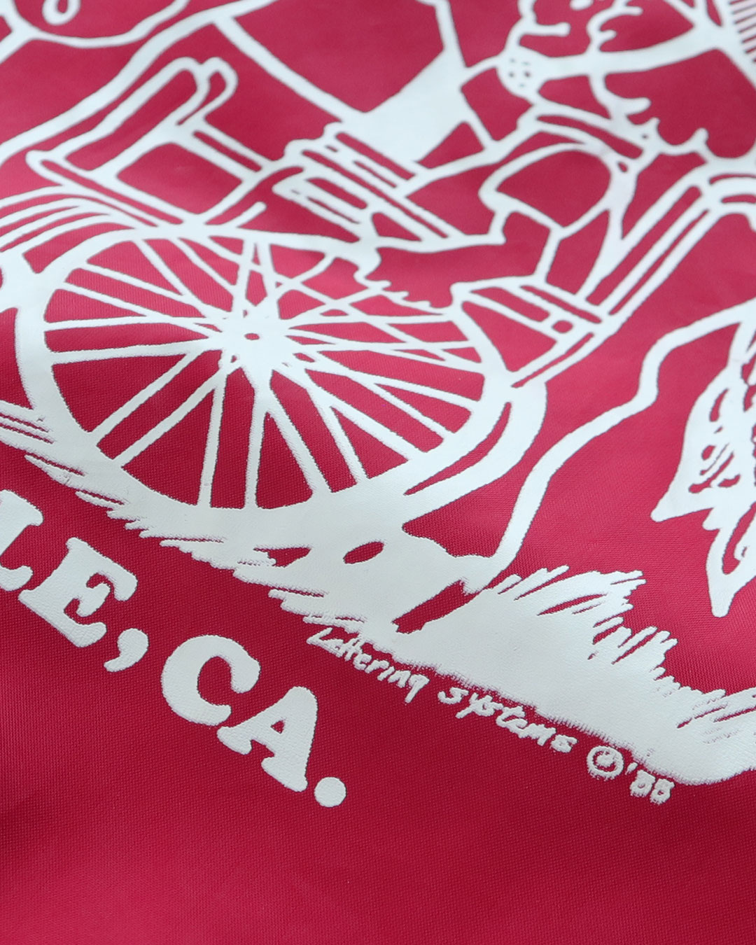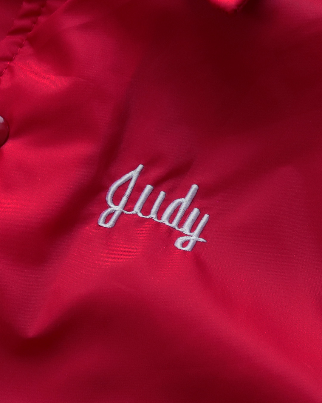 赤いボディーにポップな少しかわいらしい絵柄が良いデザインのコーチジャケットです。