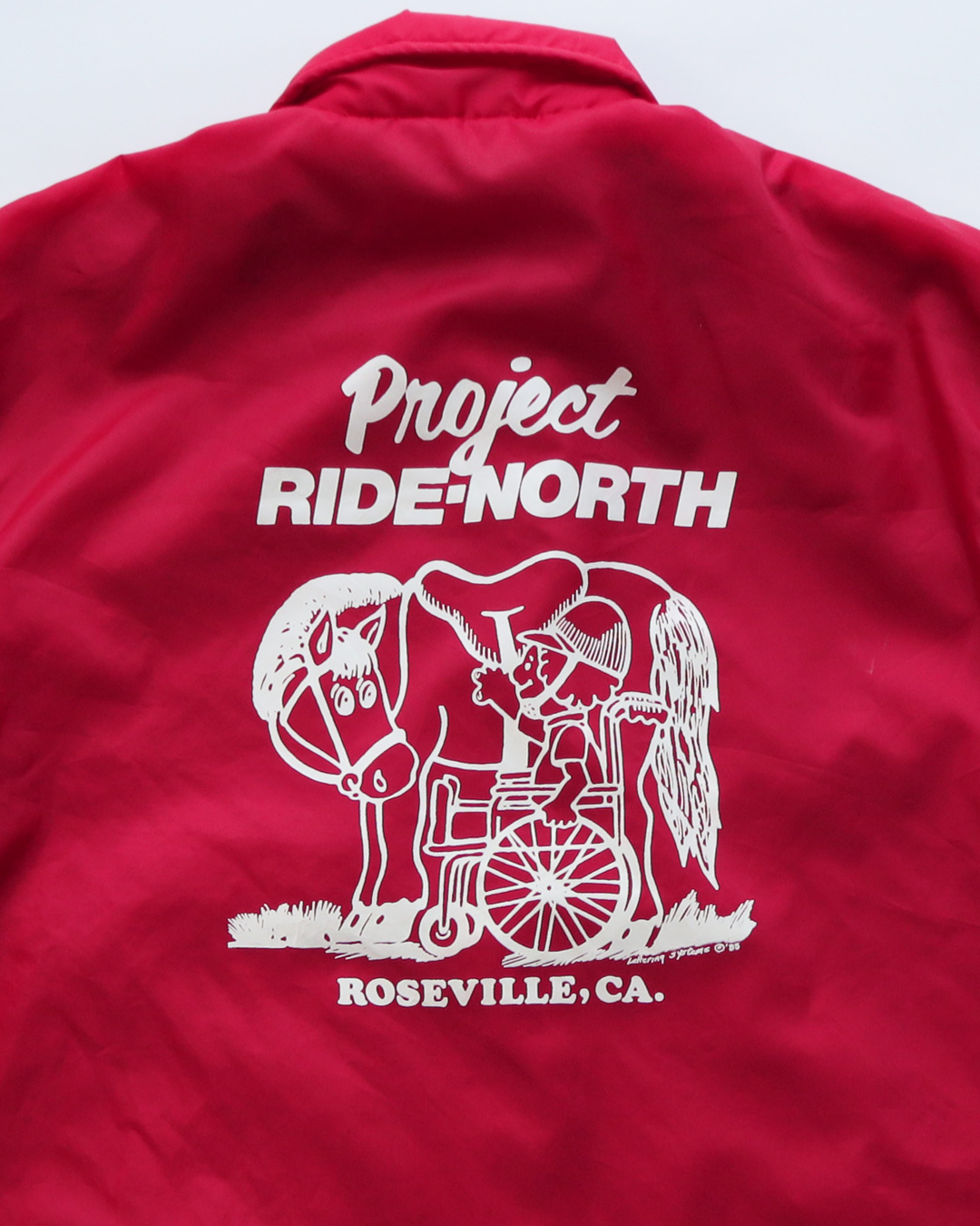 プリントから、おそらくカリフォルニア州のローズビルという街にある牧場での車いすの子どもの乗馬体験会か何かの物のようです。