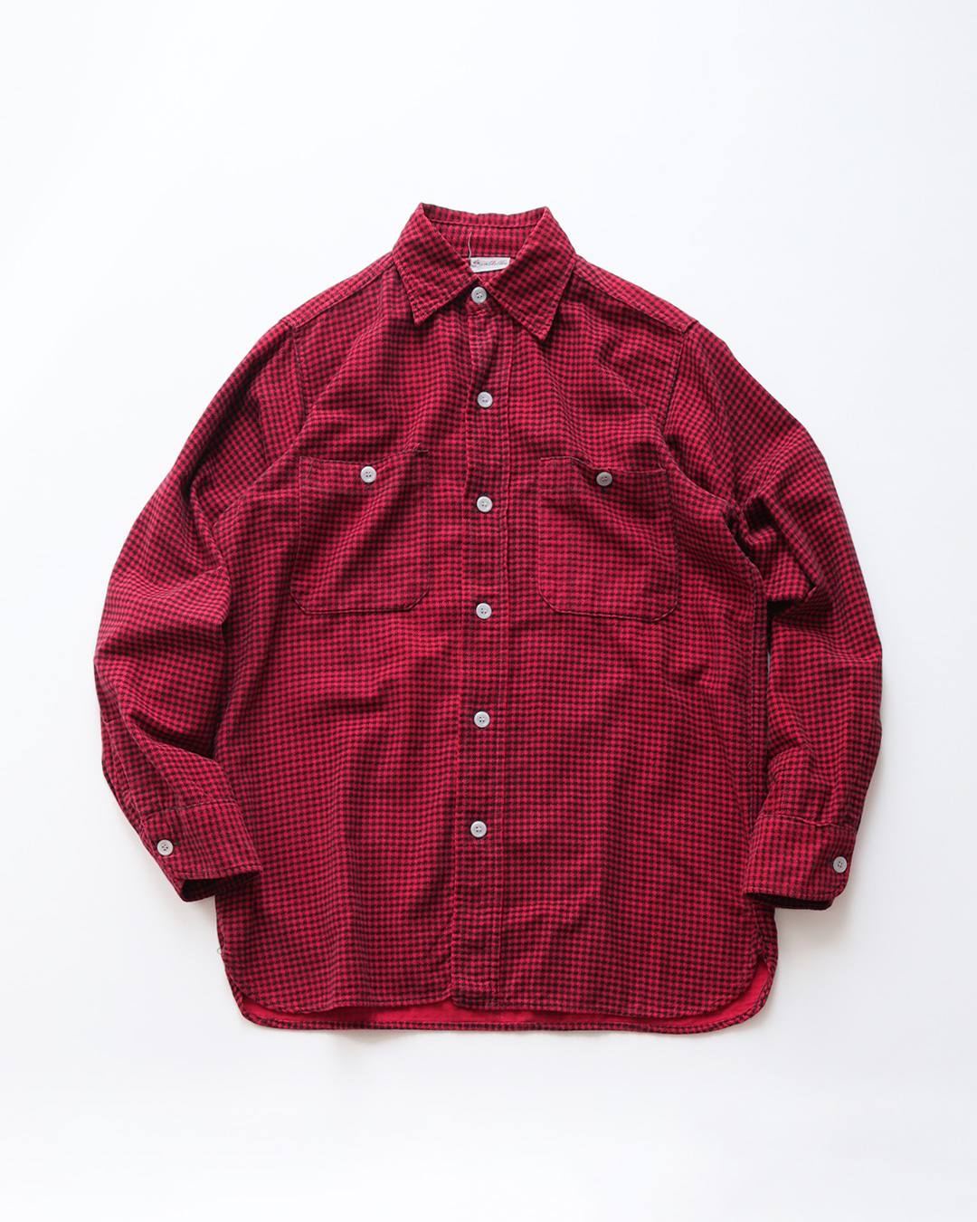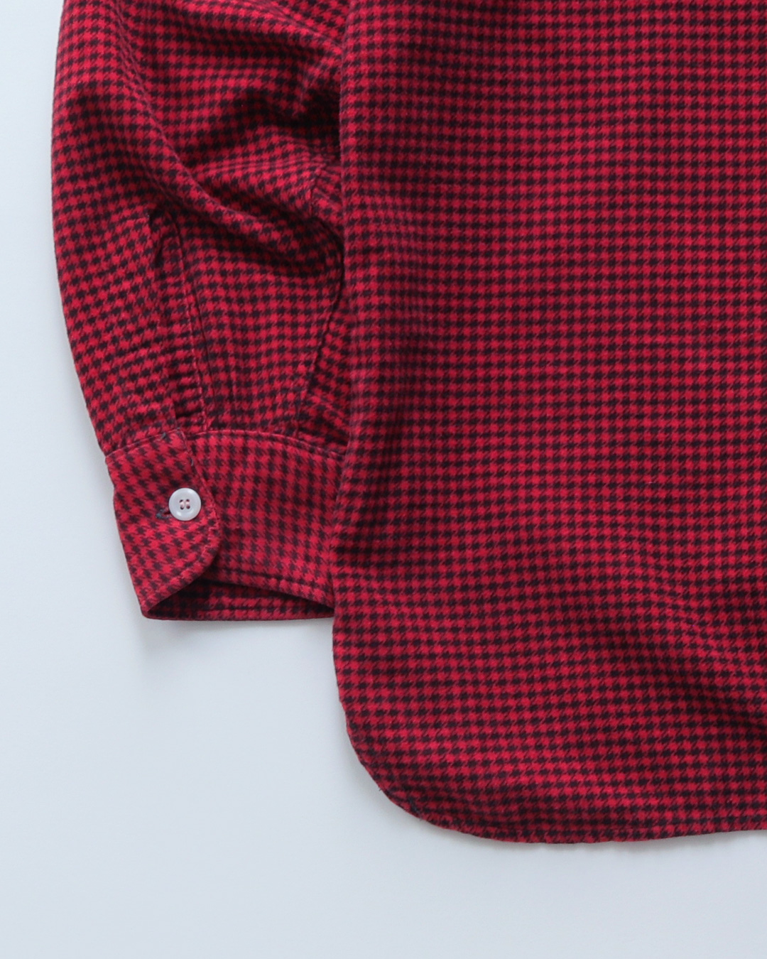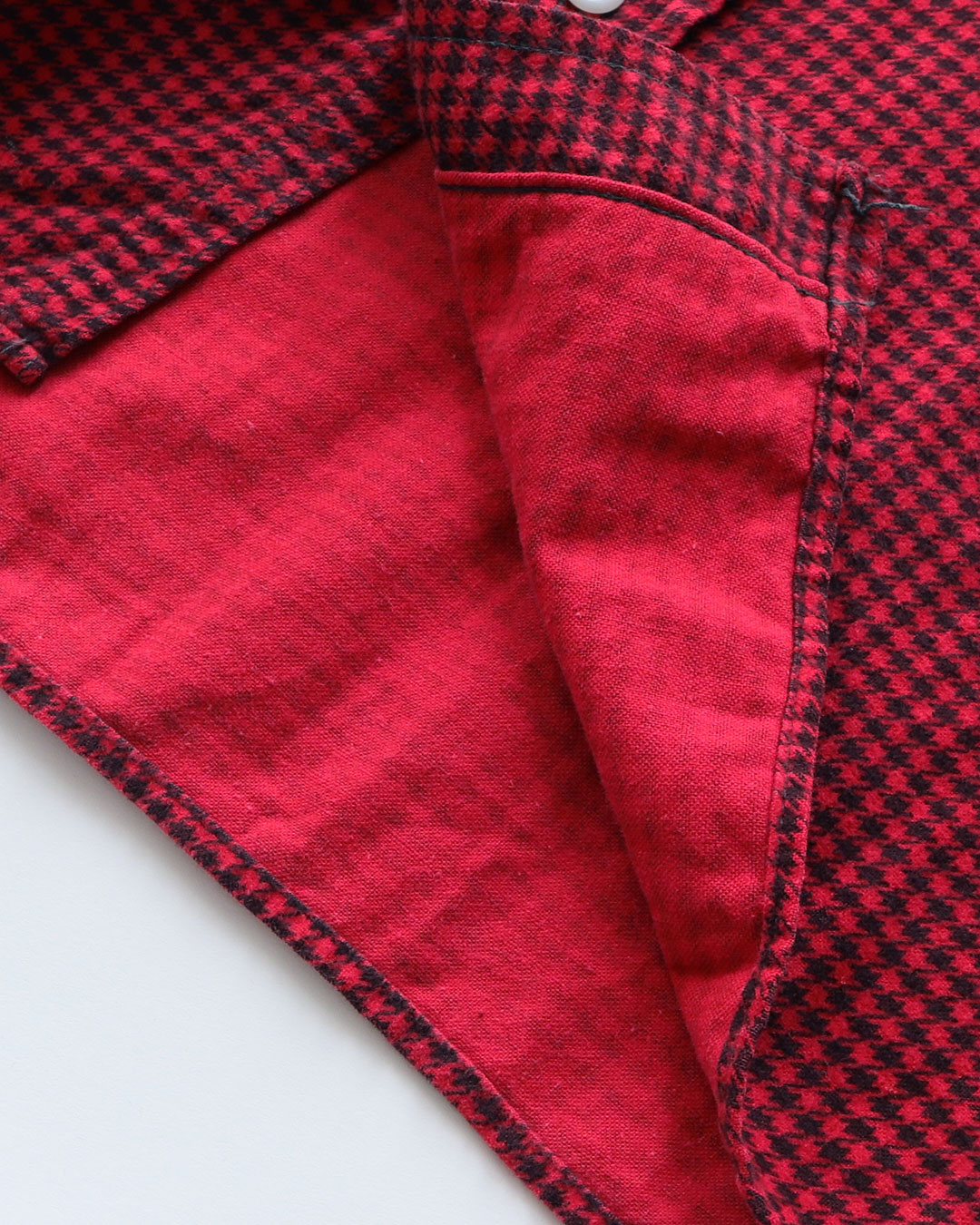 素材はおそらく100%コットンのフランネル地で、千鳥格子柄がプリントされた生地が使われたものです。