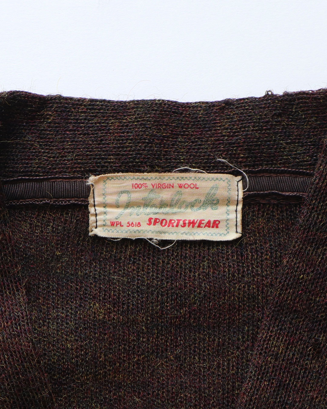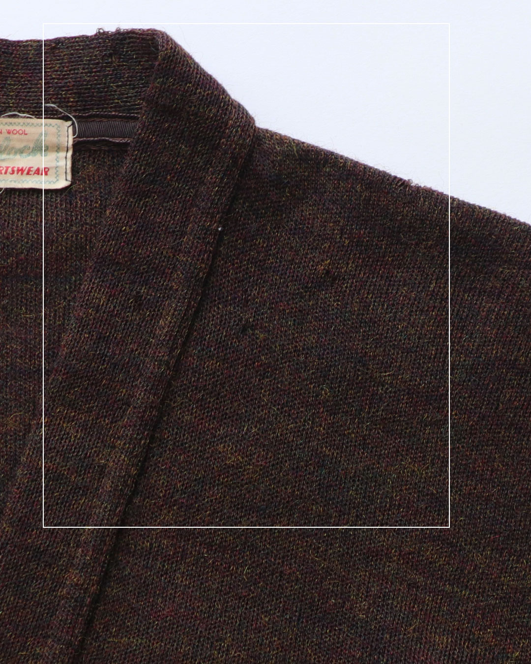 形は細目のタイトな作りで、Vネックのカーディガンですが、古い物特有のVの浅い形です。
