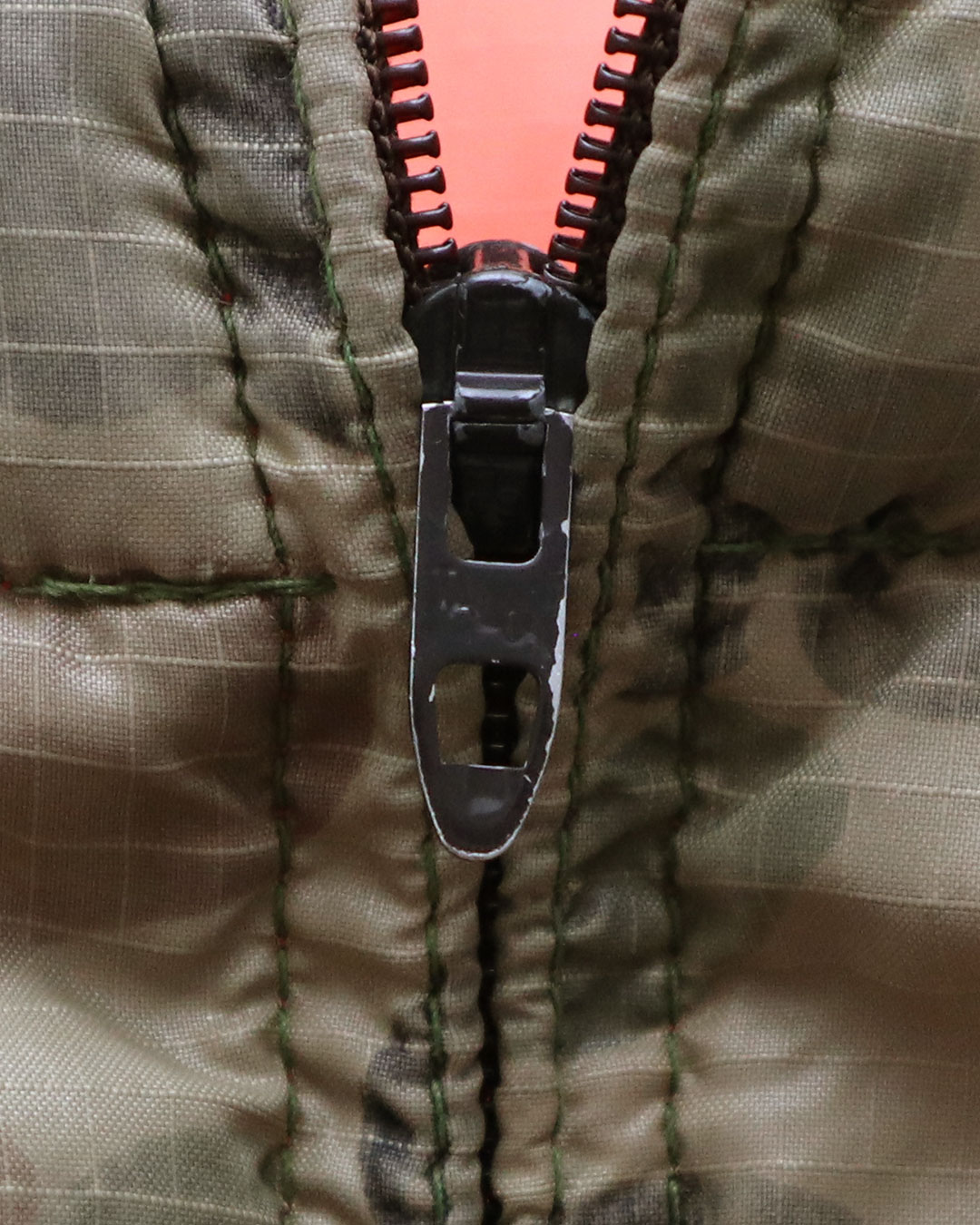 表面はダックハンターカモの柄がぷりんつぁれた生地が使われ、裏地にはレスキュー時などに使われるオレンジ色の生地が使われています。