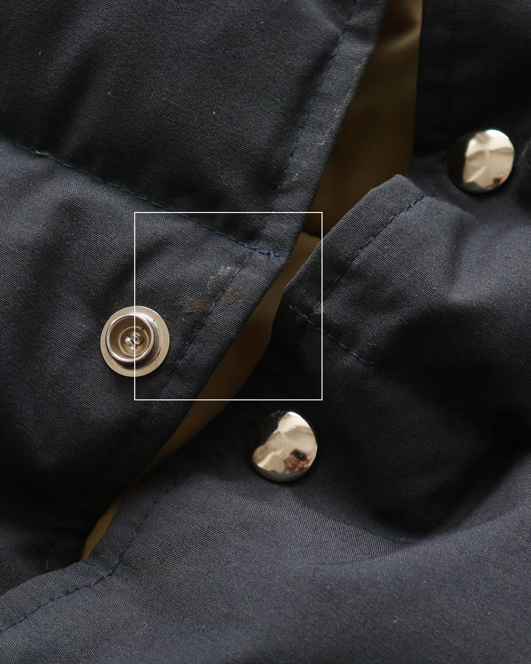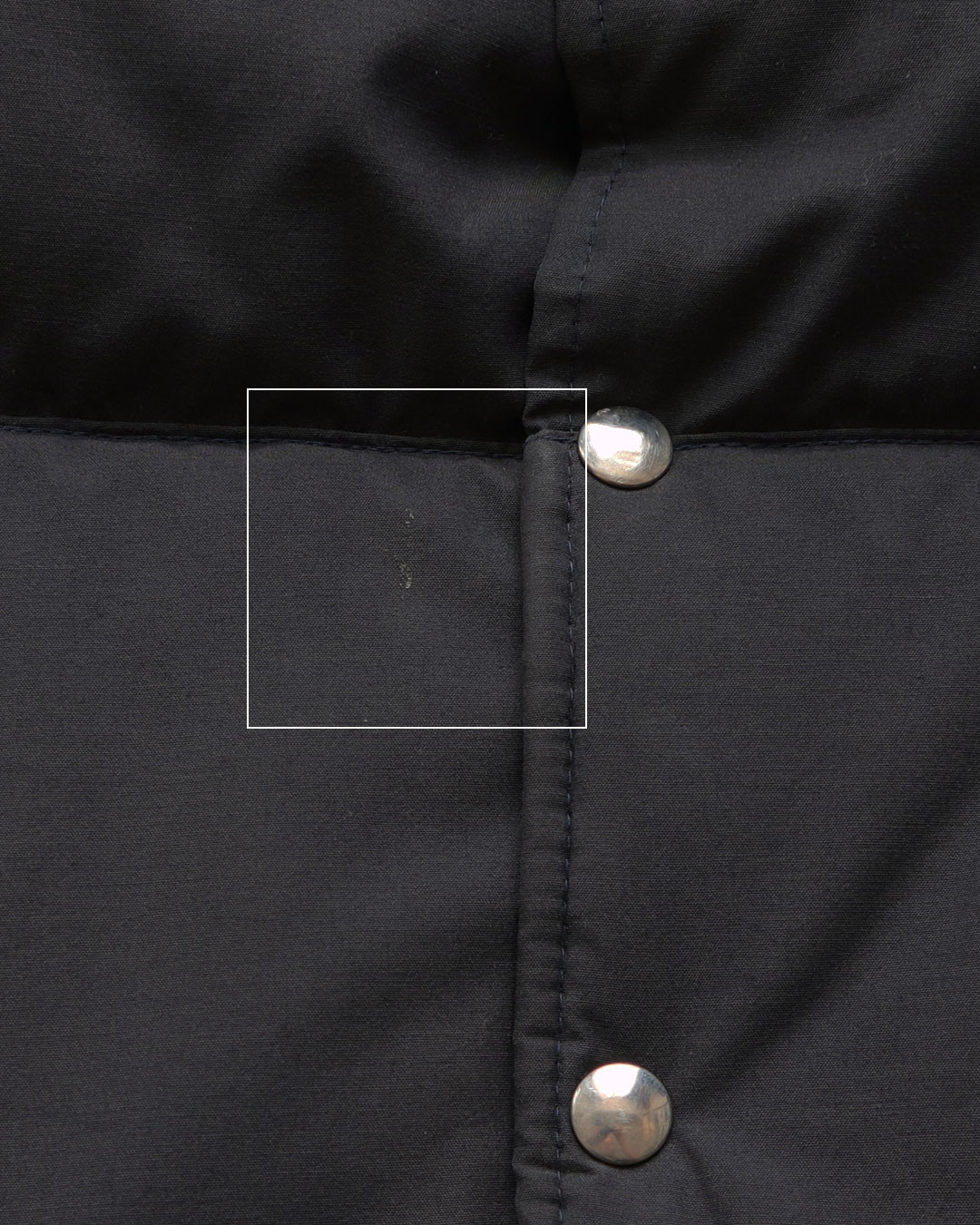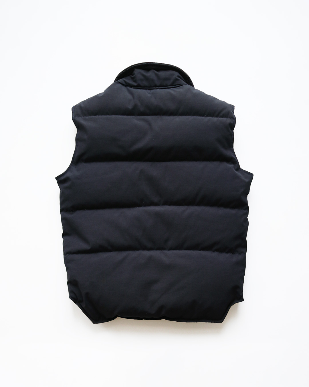 少し色褪せた濃いネイビーの色合いが、とても良い雰囲気のダウンベストです。