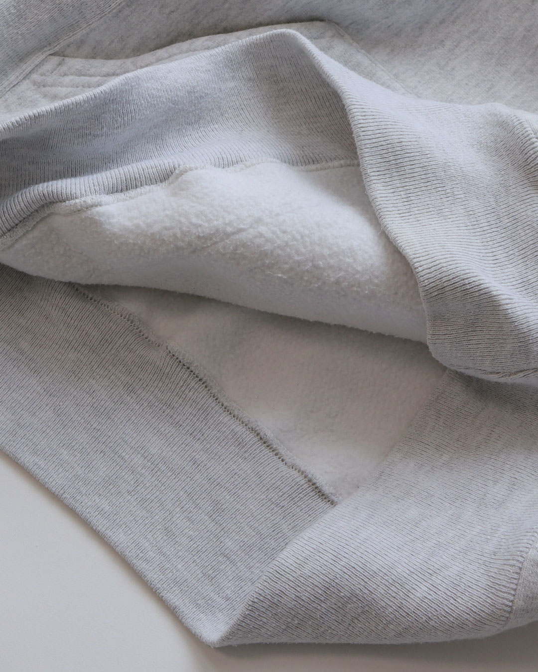 素材は、コットンと少しのポリエステルの混紡のスウェットで、Champion のリバースウィーブ同様に、厚手でしっかりとした生地感のものです。