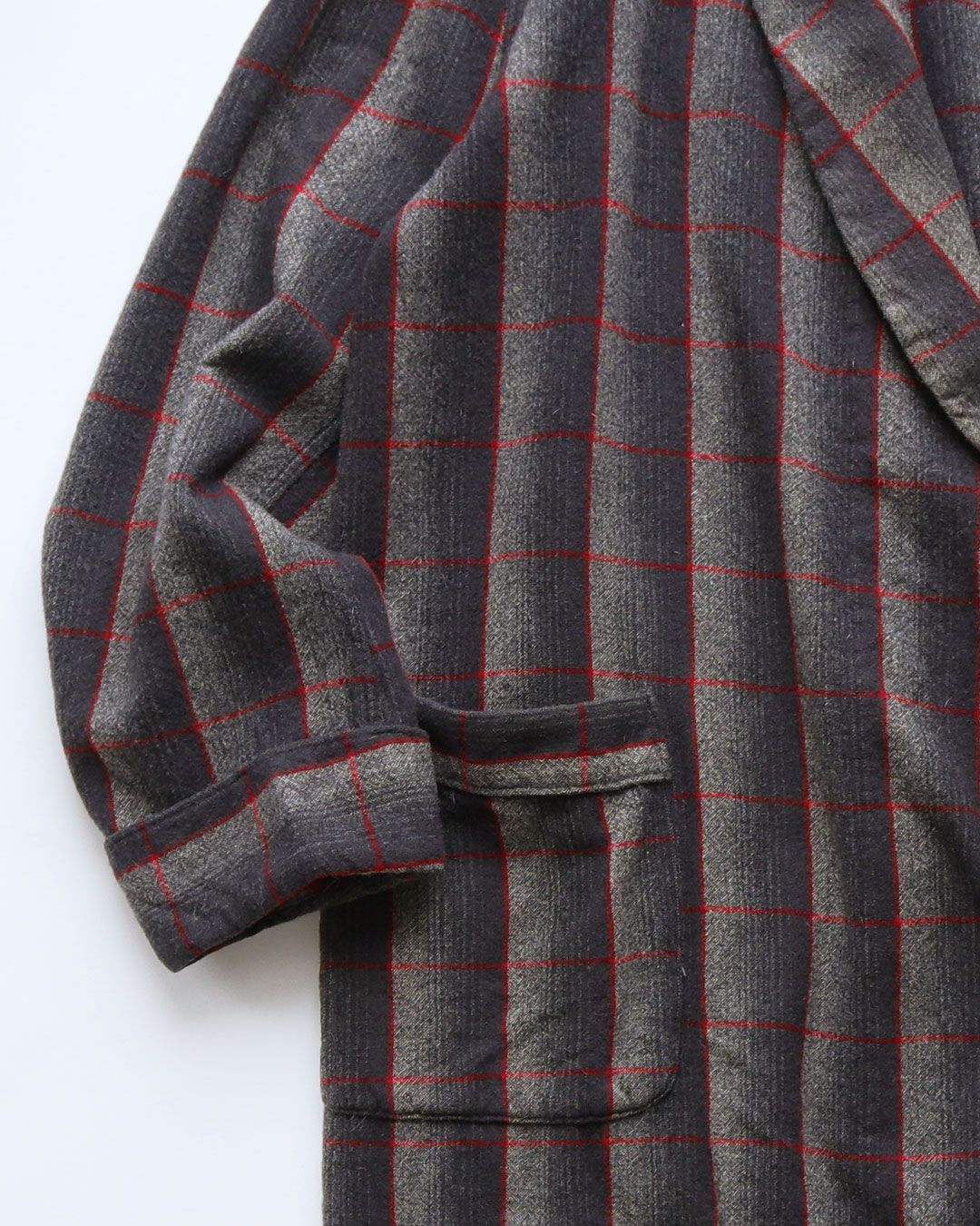黒グレーのオンブレチェックが、とてもオールド感あり、雰囲気の良いローブです。