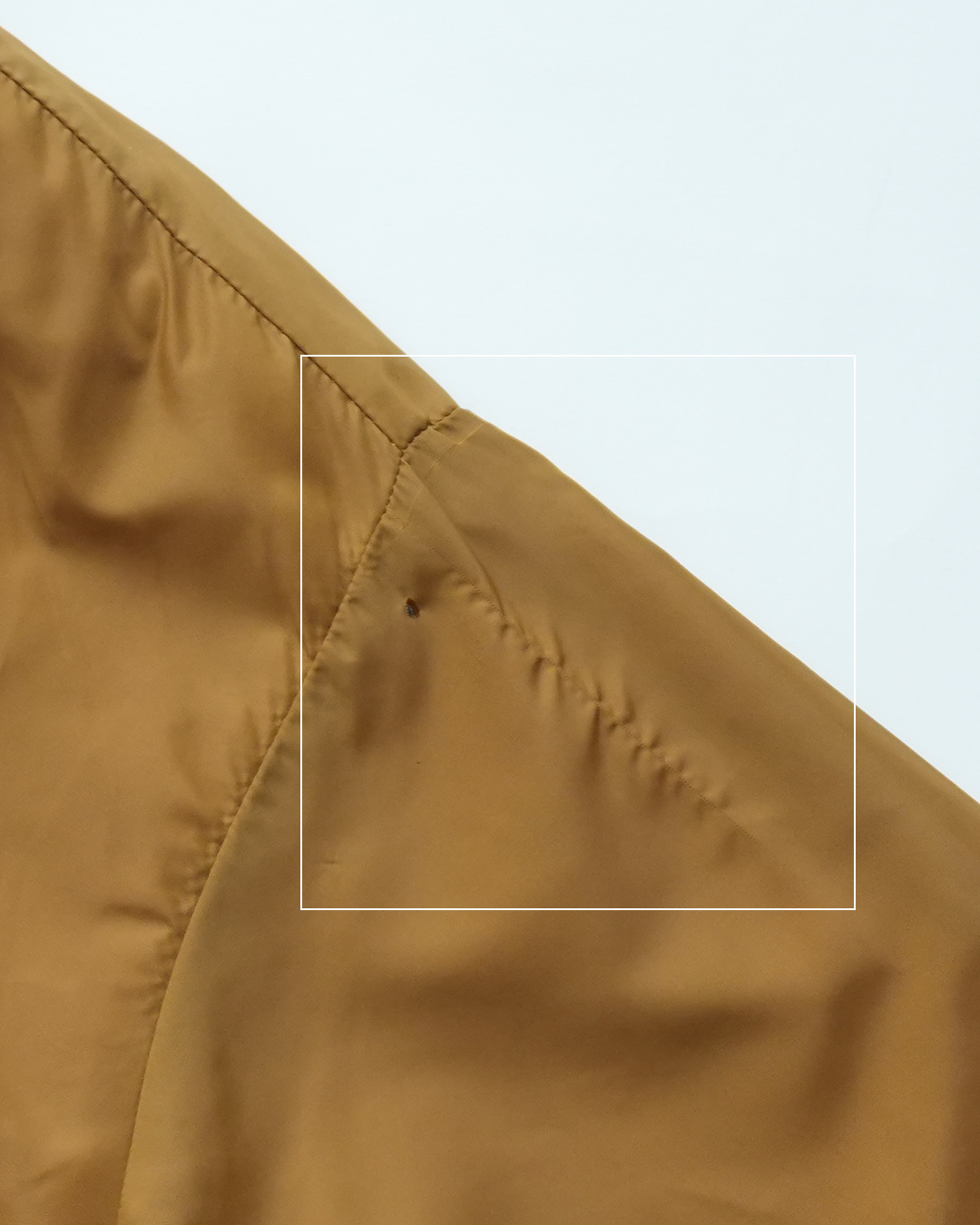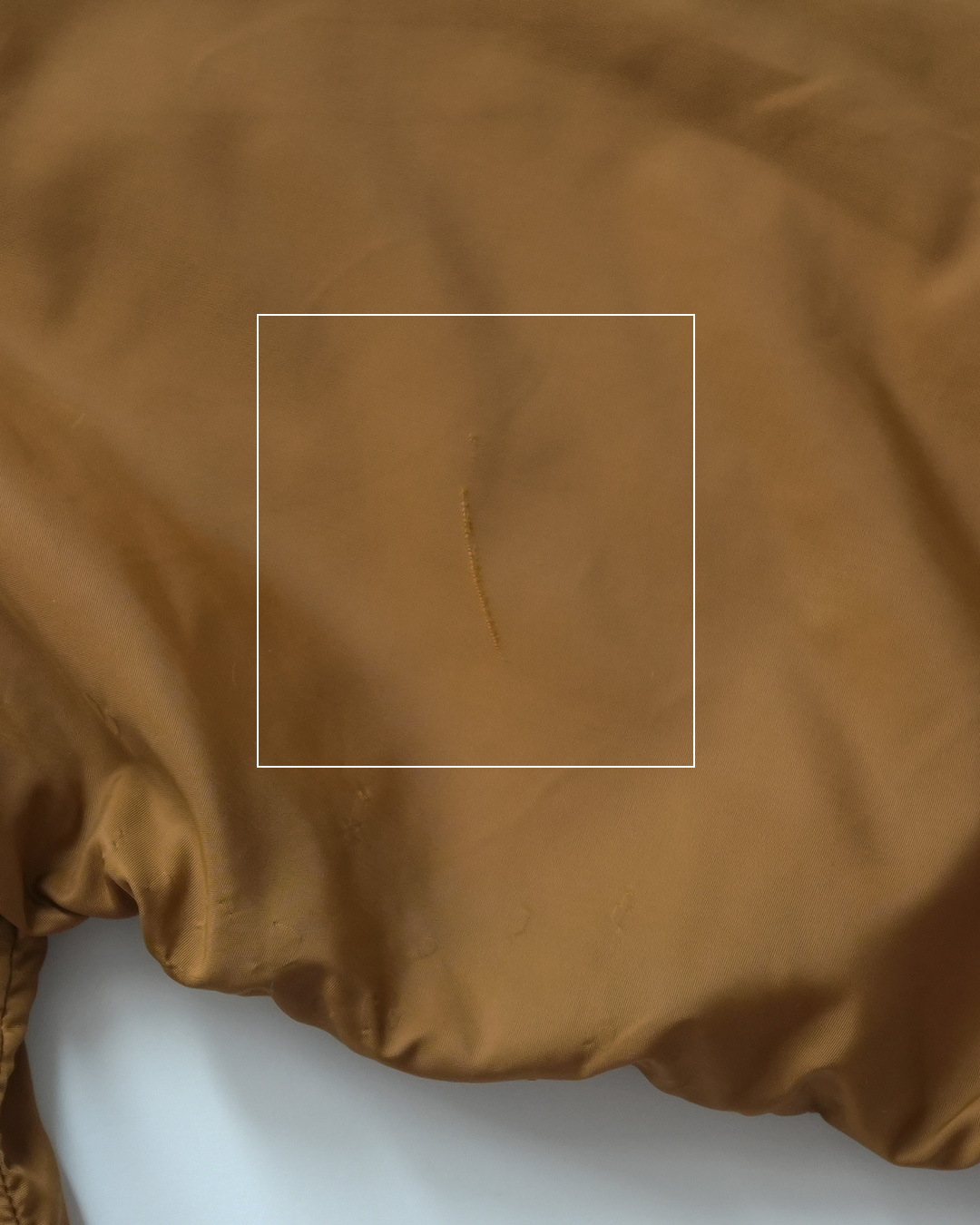 | Condition | USED 使用感あり。 左胸、左肩にそれぞれキズ。 左袖に糸抜けのような線あり。 右二の腕付近に擦れのようなキズあり。裏地に変色あり。袖口に擦れ。糸きれ・縫い直し箇所あり。 しかし、その他、特に目立つダメージなく、古着慣れした方であれば問題ない程度かと思います。 |