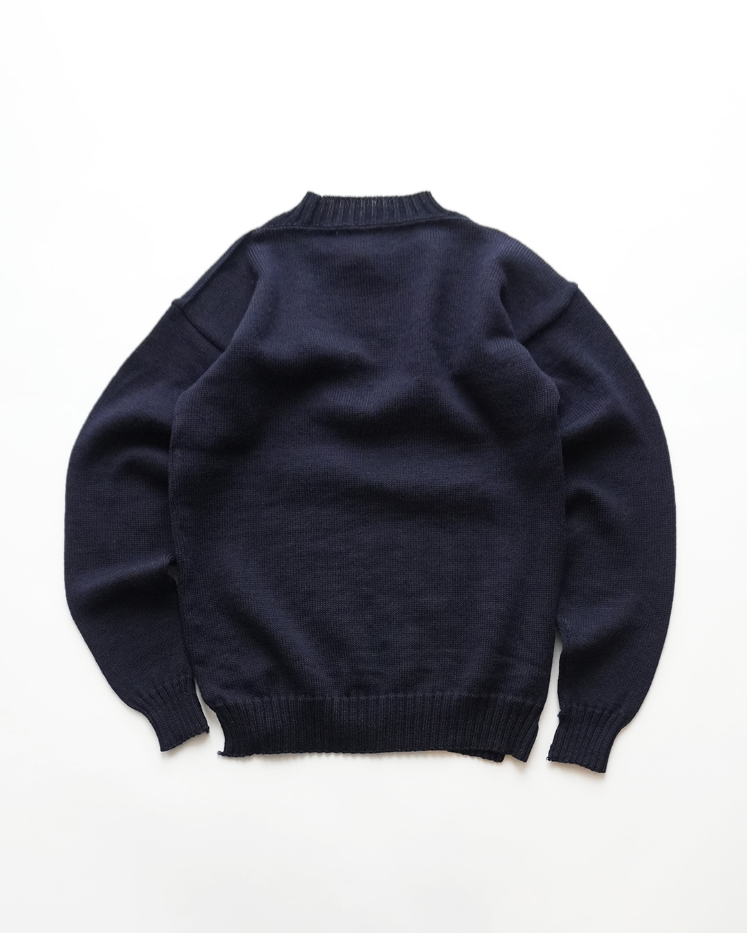 ガンジーセーターとは、イギリス海峡にある島、ガンジー島で作られたもので、もともとはイギリス海峡の荒々しい極寒の海で働く漁師のために作られたワークウェアーです。