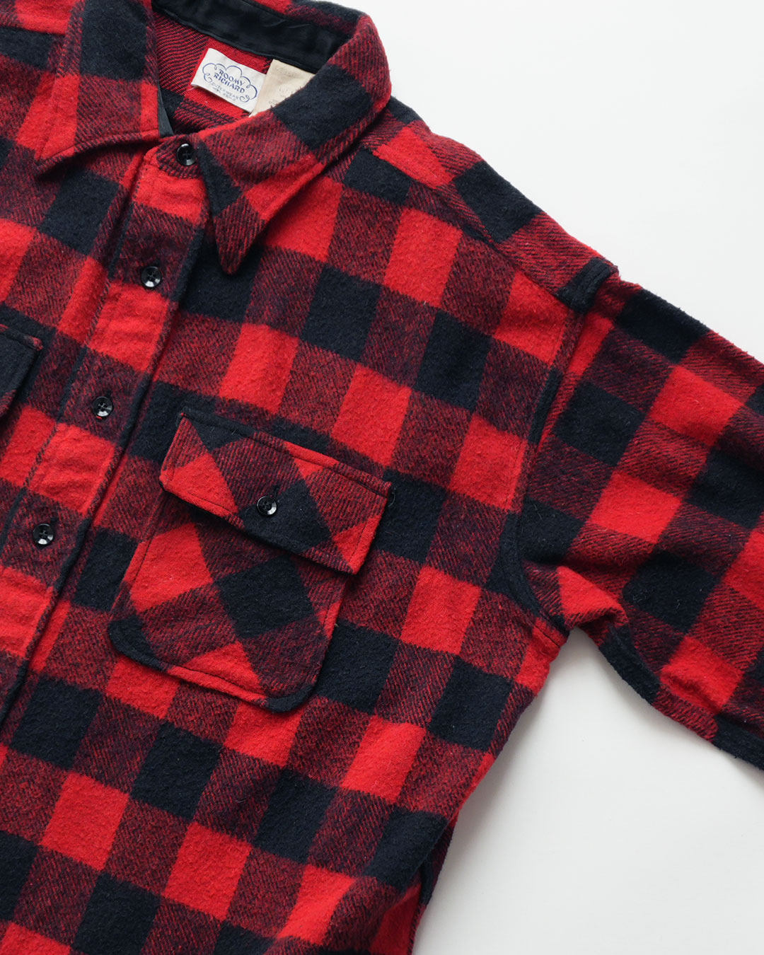 赤黒の定番チェック、バッファローチェックやブロックチェックなどと言われるチェック柄がとてもオールド感ある良いシャツです。