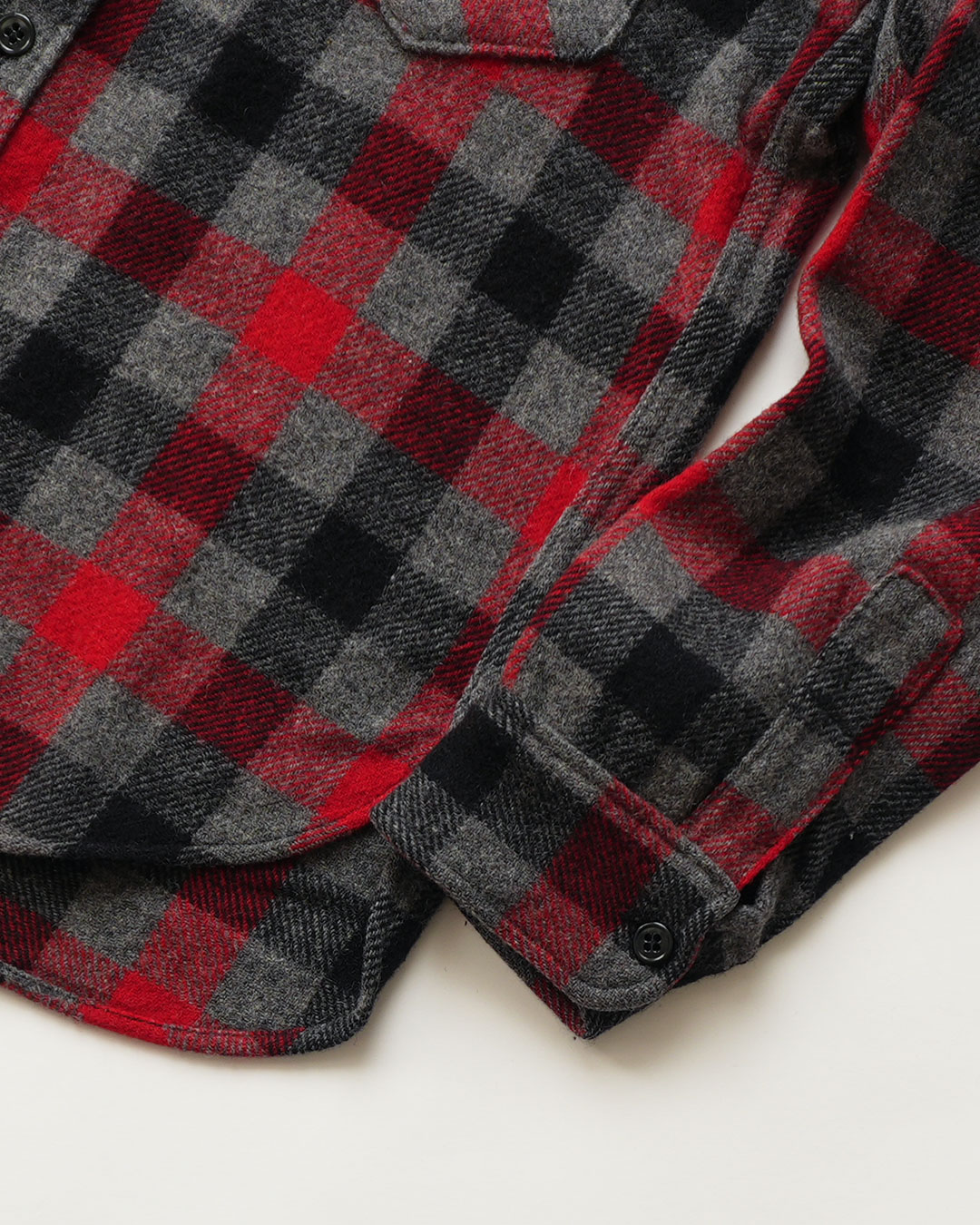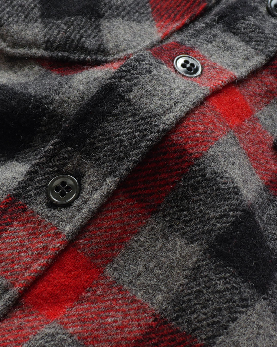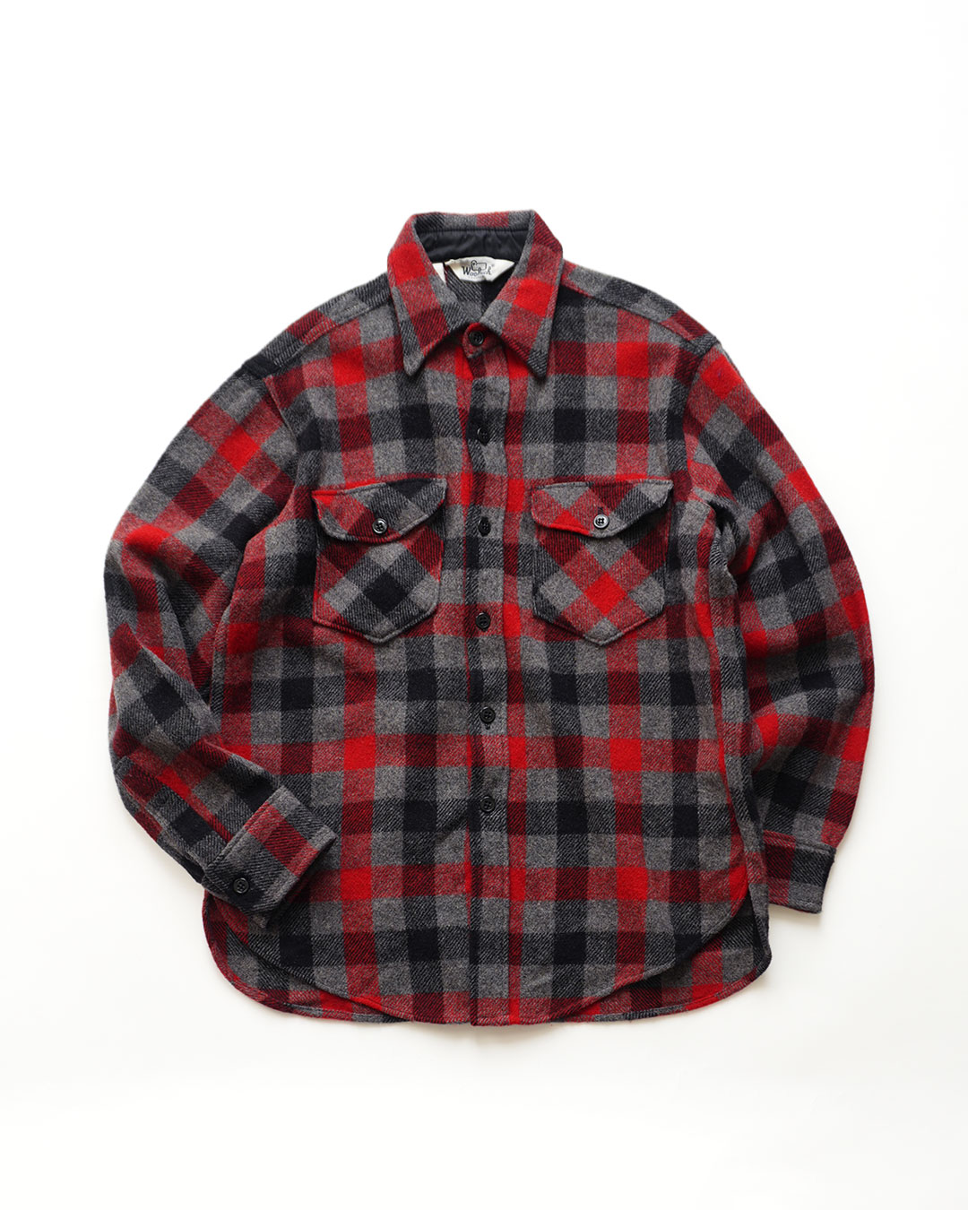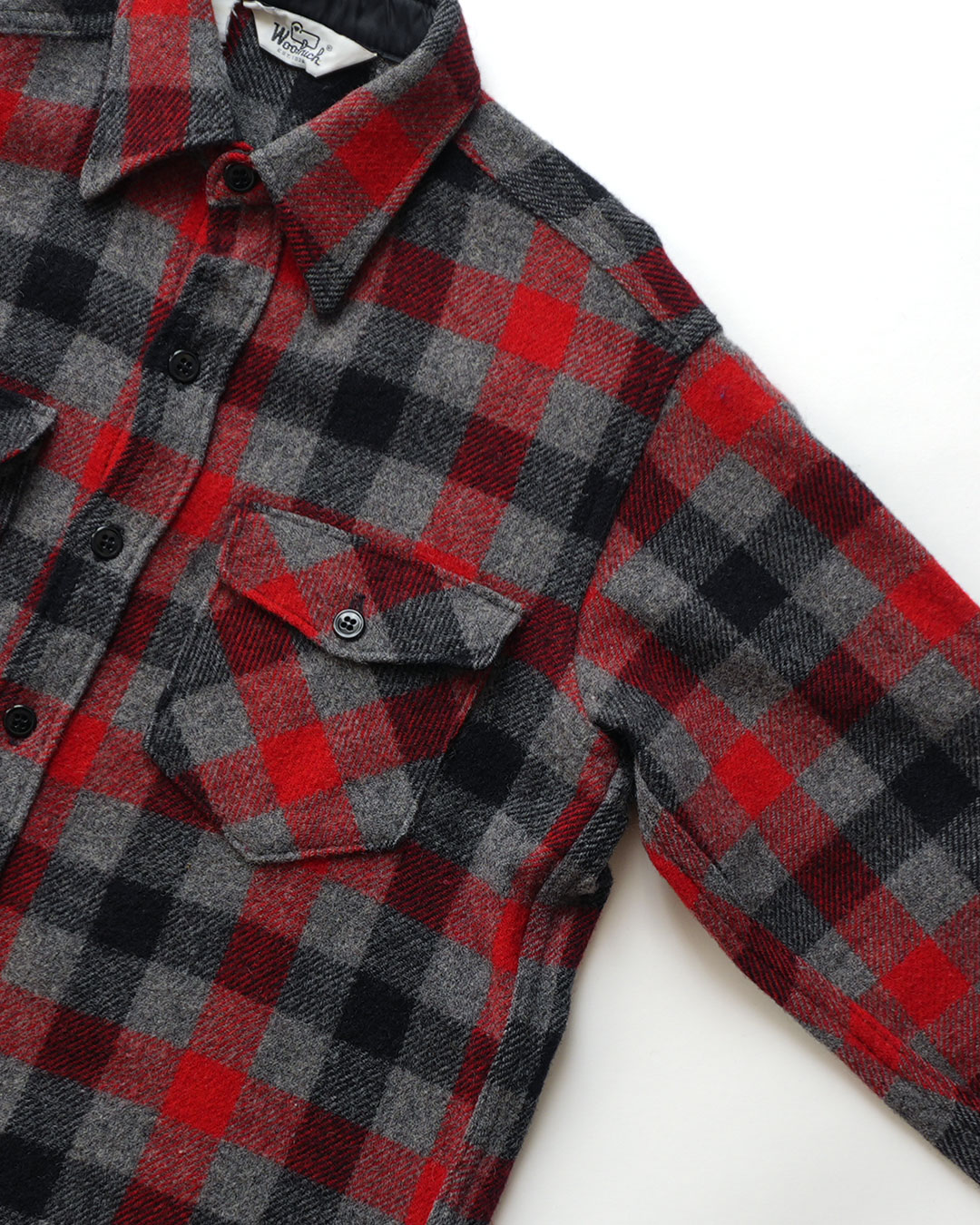 グレーに赤と黒のブロックチェックが混ざるとても良い色合いのオールド感ある良いシャツです。