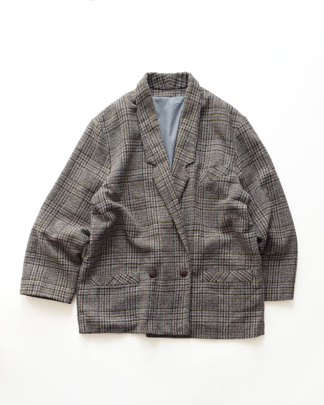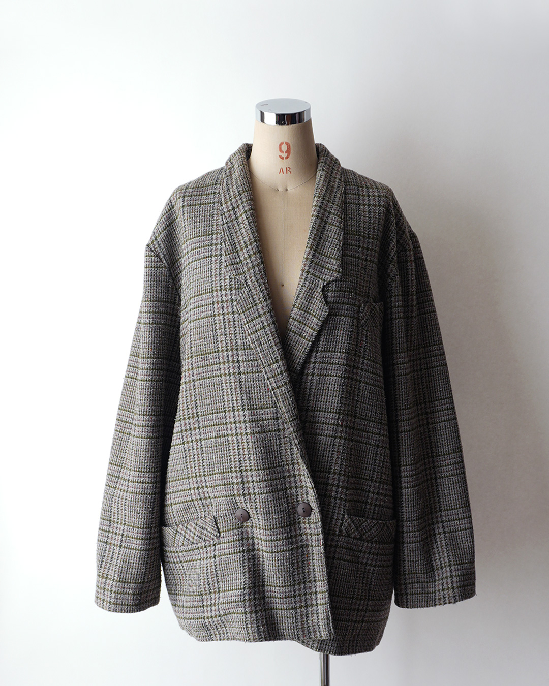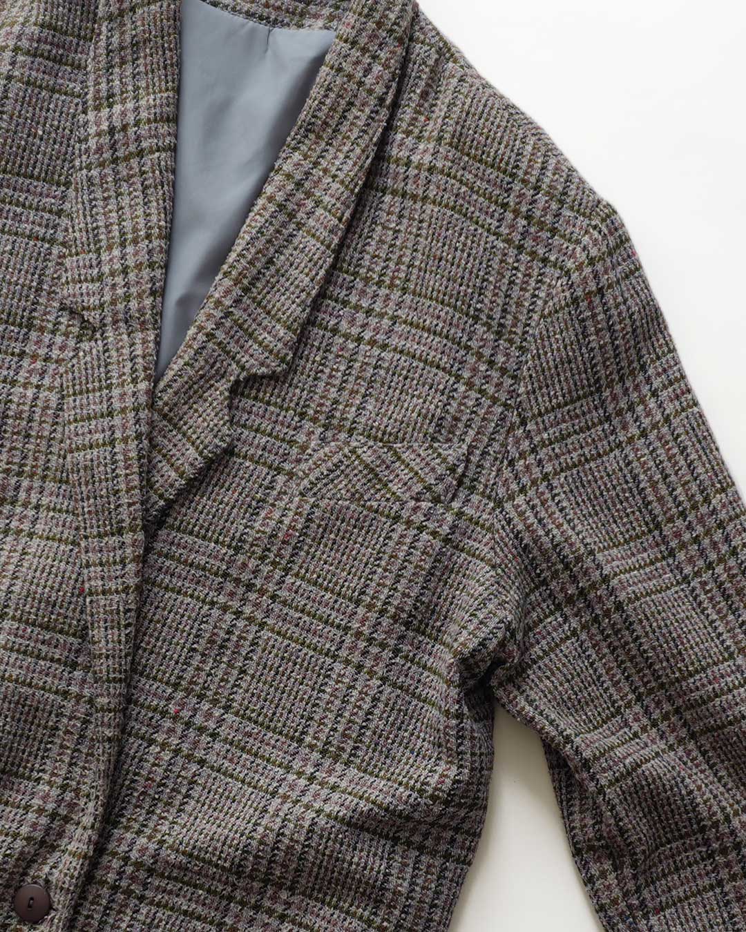 UNKNOWN BRAND WOOL NEP TWEED CHECK BIG SILHOUETTE TAILORED JACKET