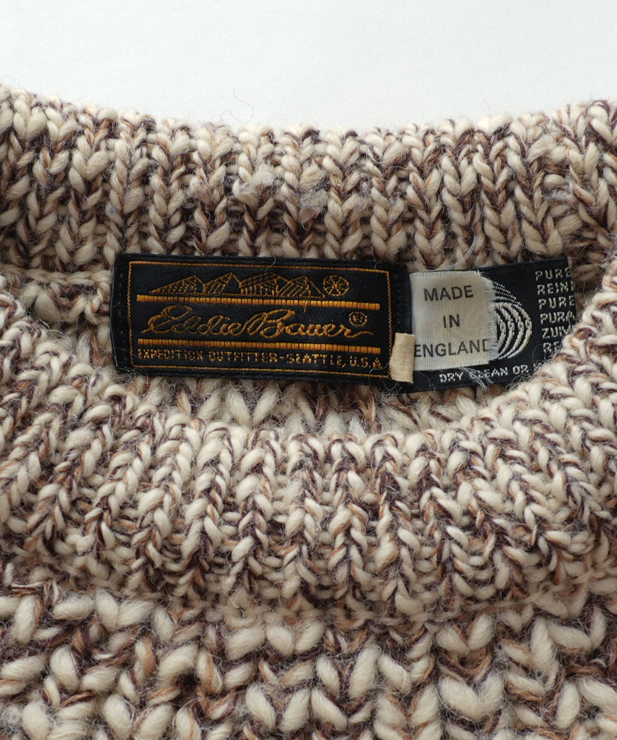 80's Eddie Bauer MIX COLOR WOOL LOW GAUGE KNIT CREW NECK SWEATER "MADE IN ENGLAND"
