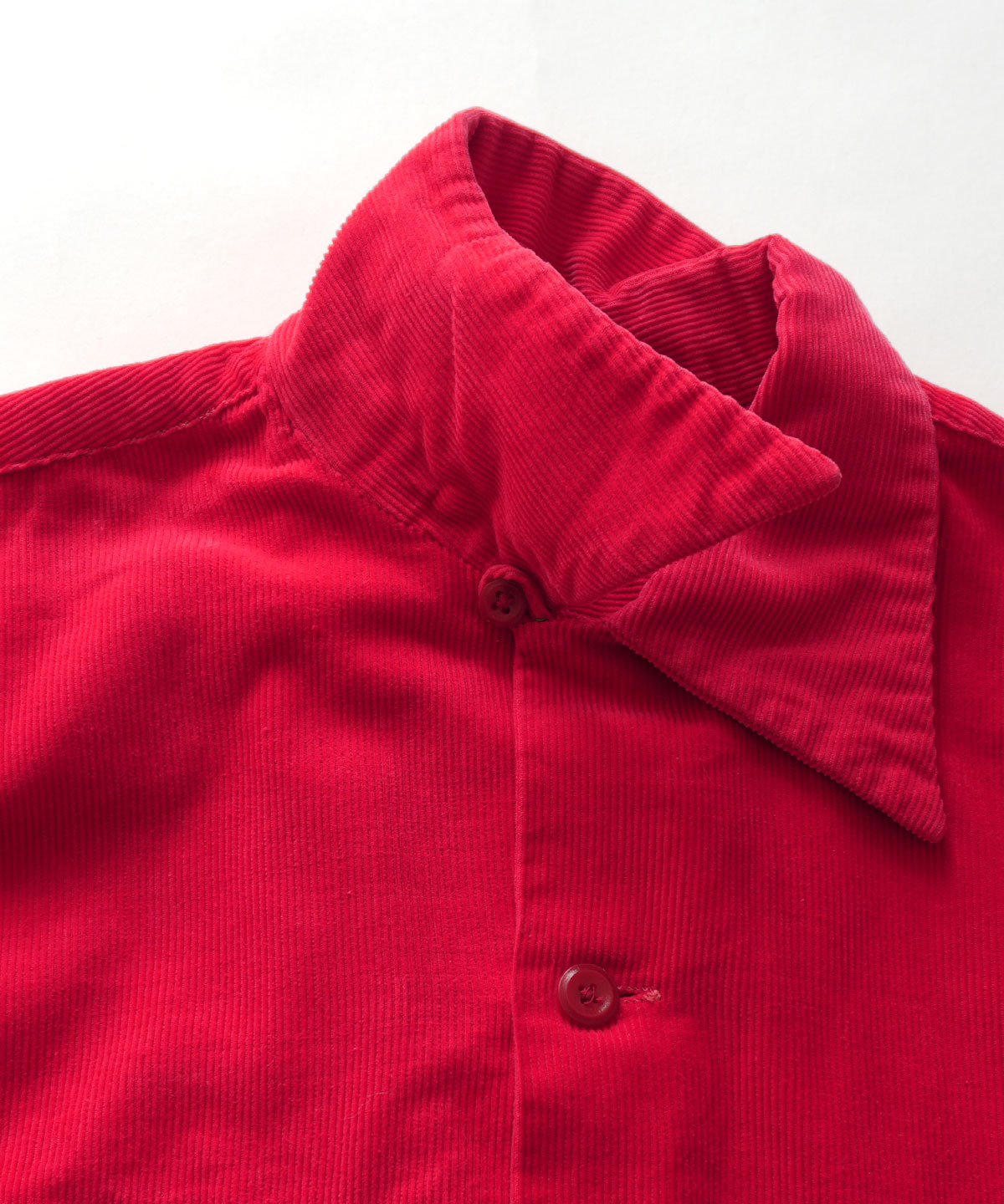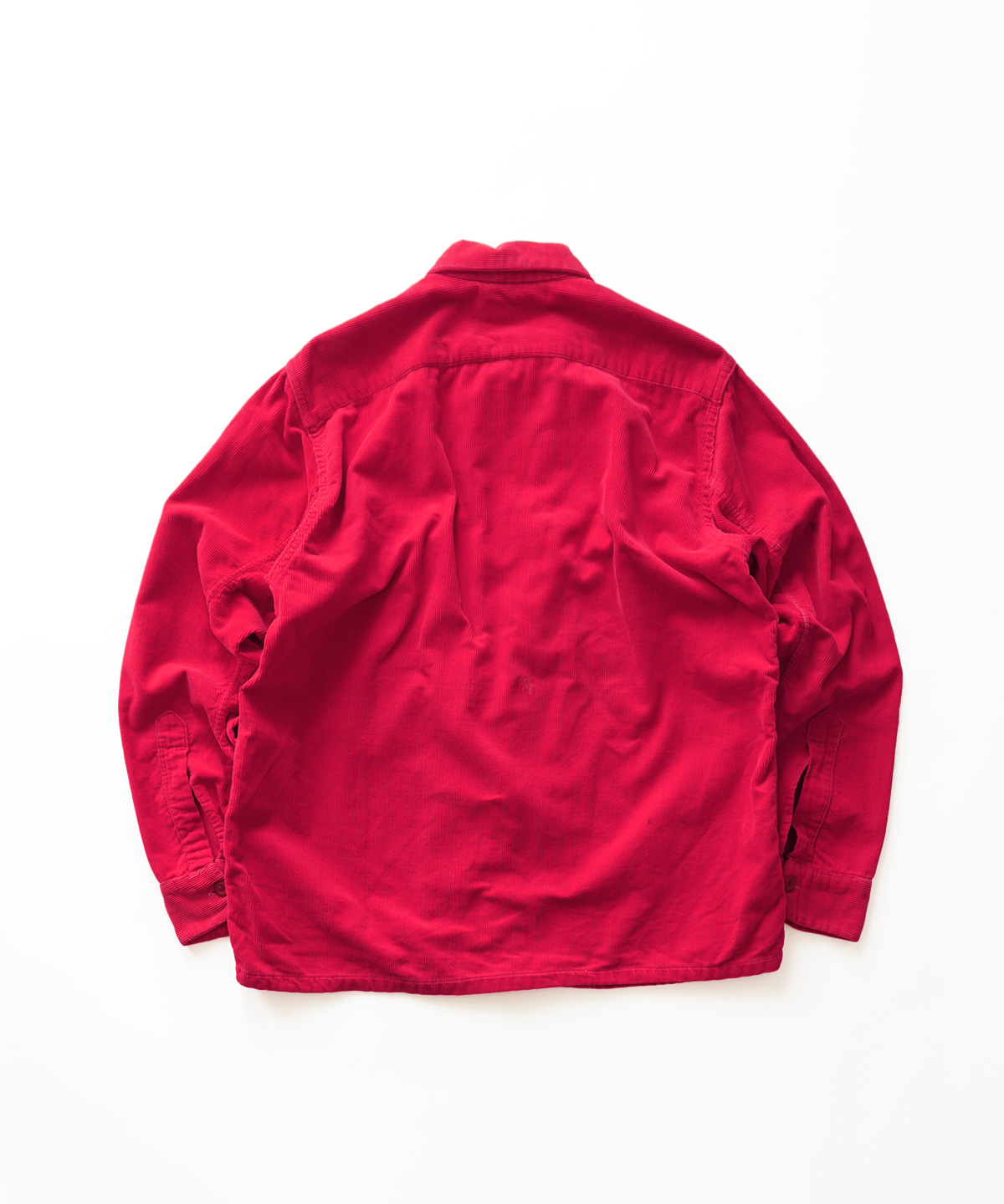 古いシャツらしく、少し色の抜けた朱色のような赤色がとてもオールド感あり、良い雰囲気のシャツです。