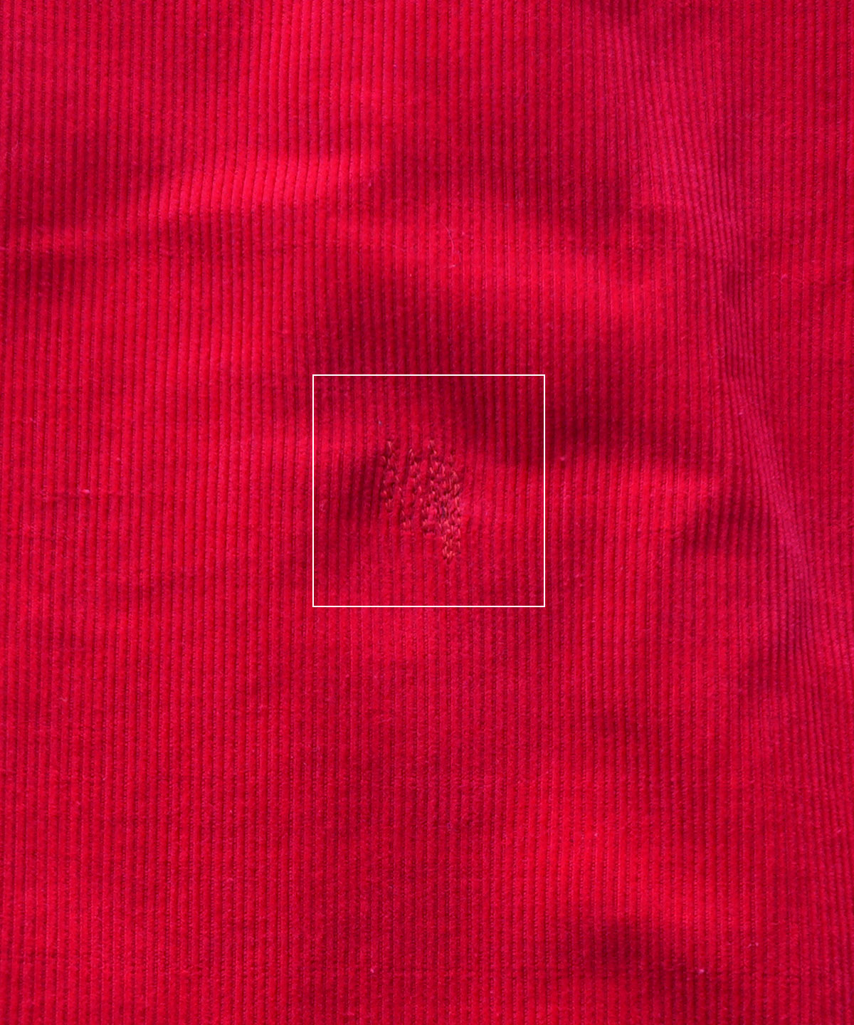 素材はおそらく100%コットンで、細い畝のコーデュロイの生地が使われています。