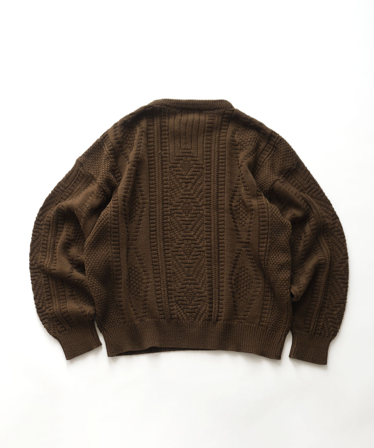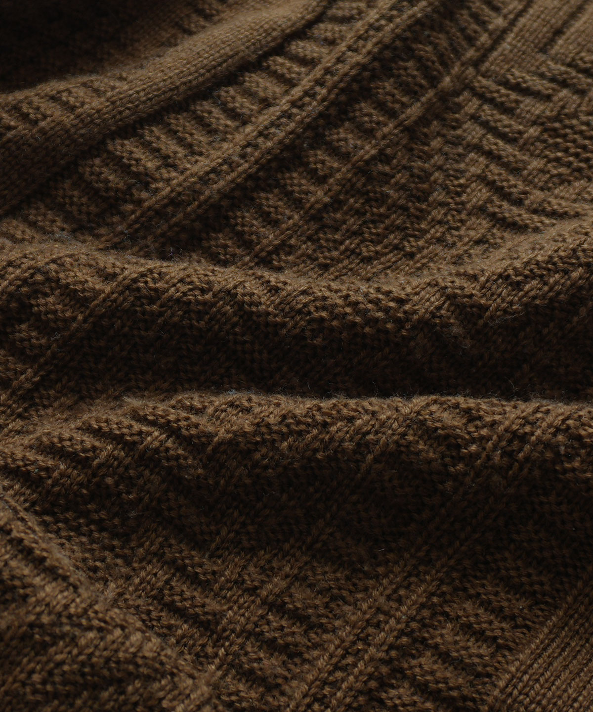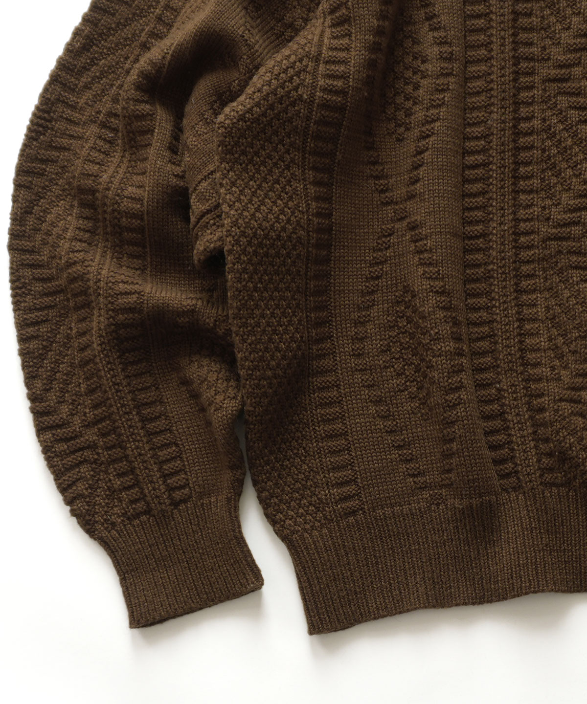 濃いブラウンとオリーブが混ざったような色合いがとても雰囲気良く、良いセーターです。