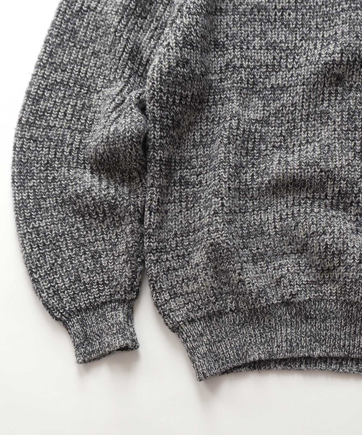 グレー白ブラックの糸が混ざりあった色合いが、とても雰囲気良く、オールド感ある良いセーターです。