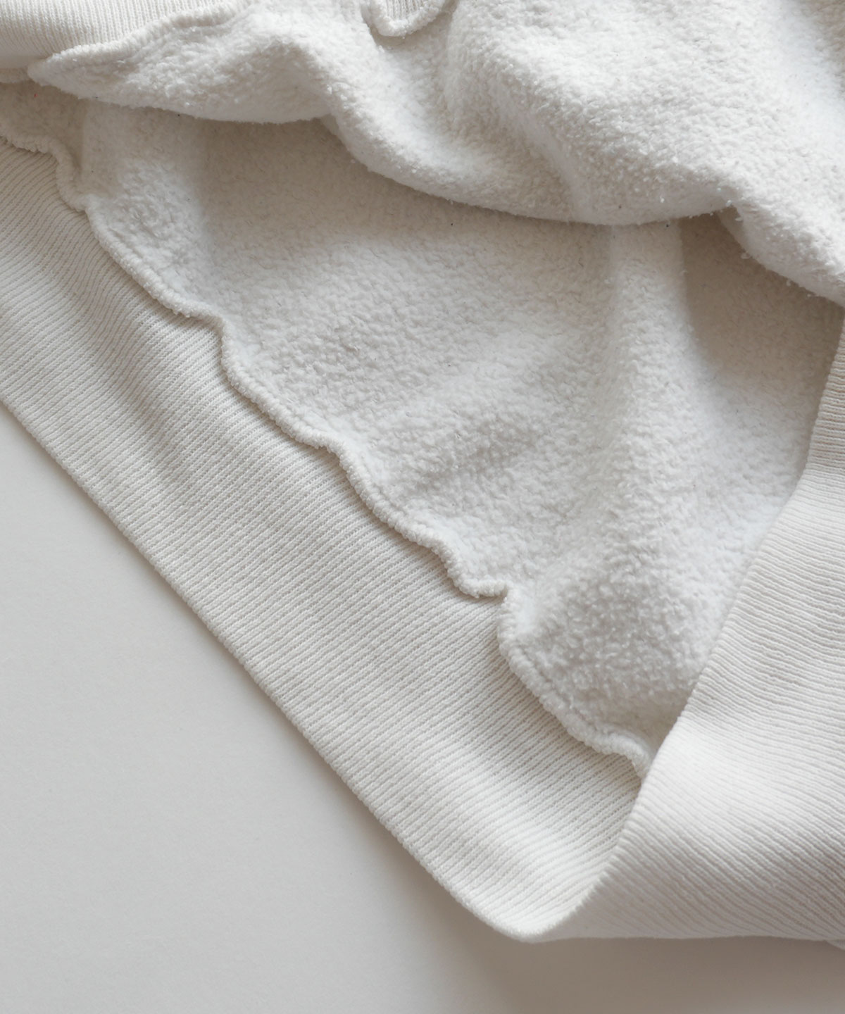 素材は、コットンとポリエステルの混紡のスウェットで、柔らかい生地感のものです。