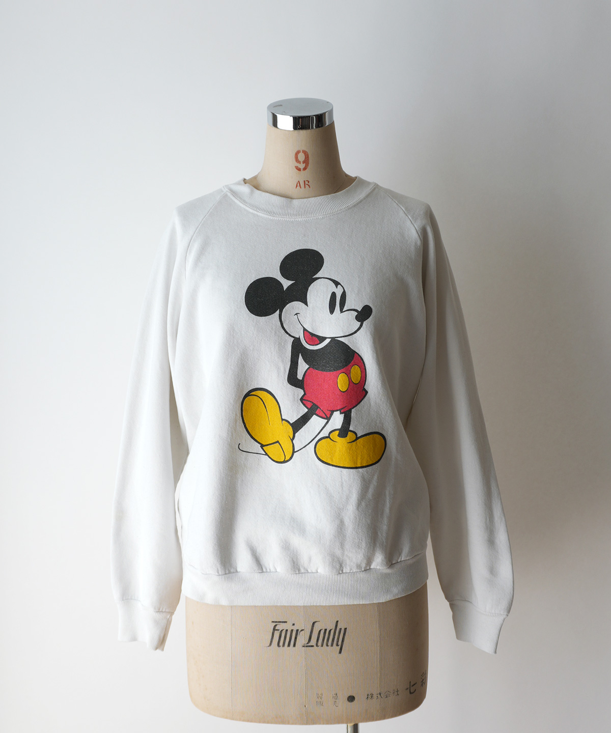 白のボディーに、ミッキーのプリントがとても映える、オールド感のある良い雰囲気のスウェットです。