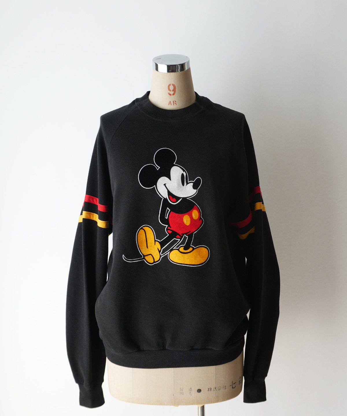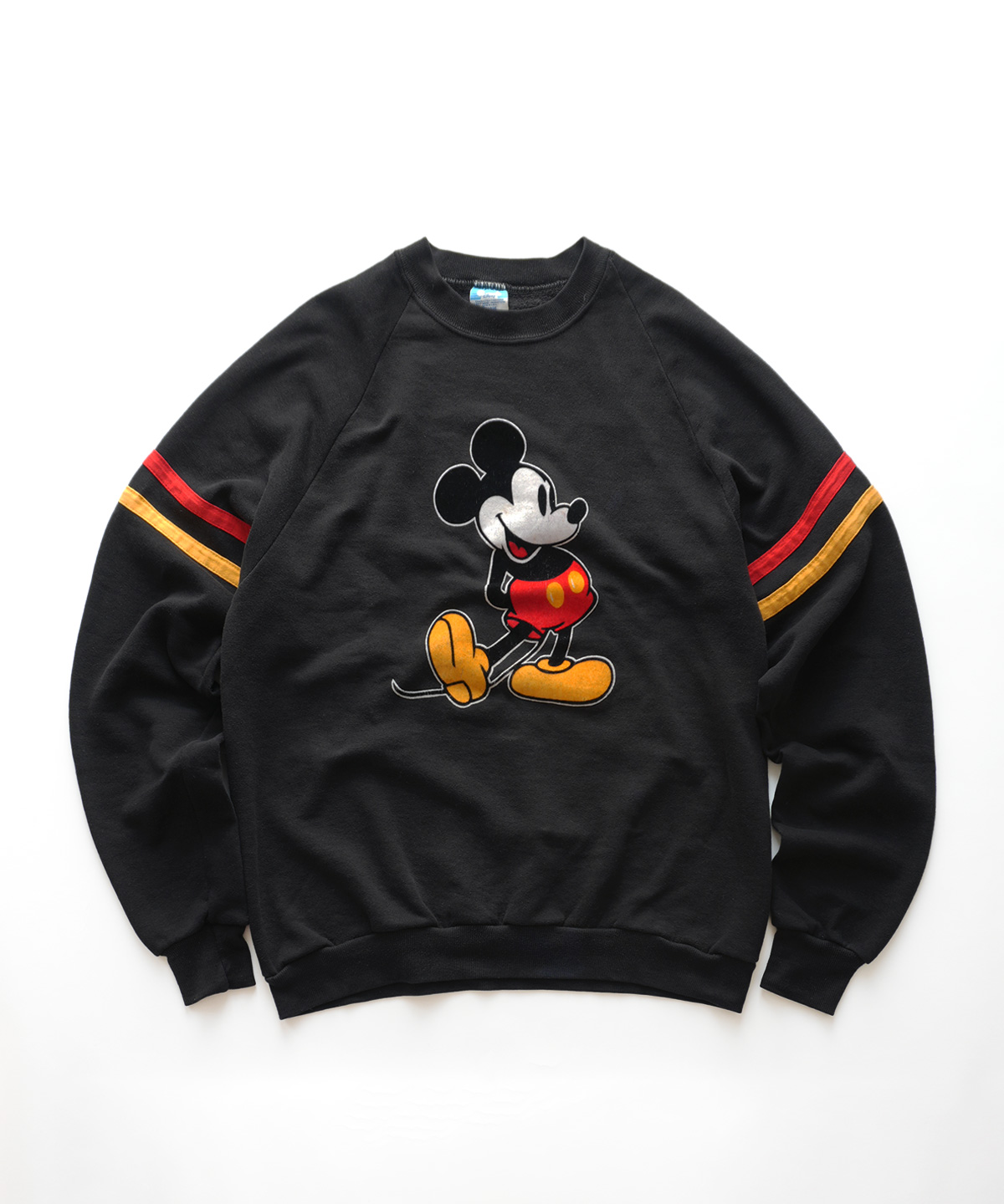 黒のボディーに、フロッキープリントのミッキーがとても映える、オールド感のある良い雰囲気のスウェットです。