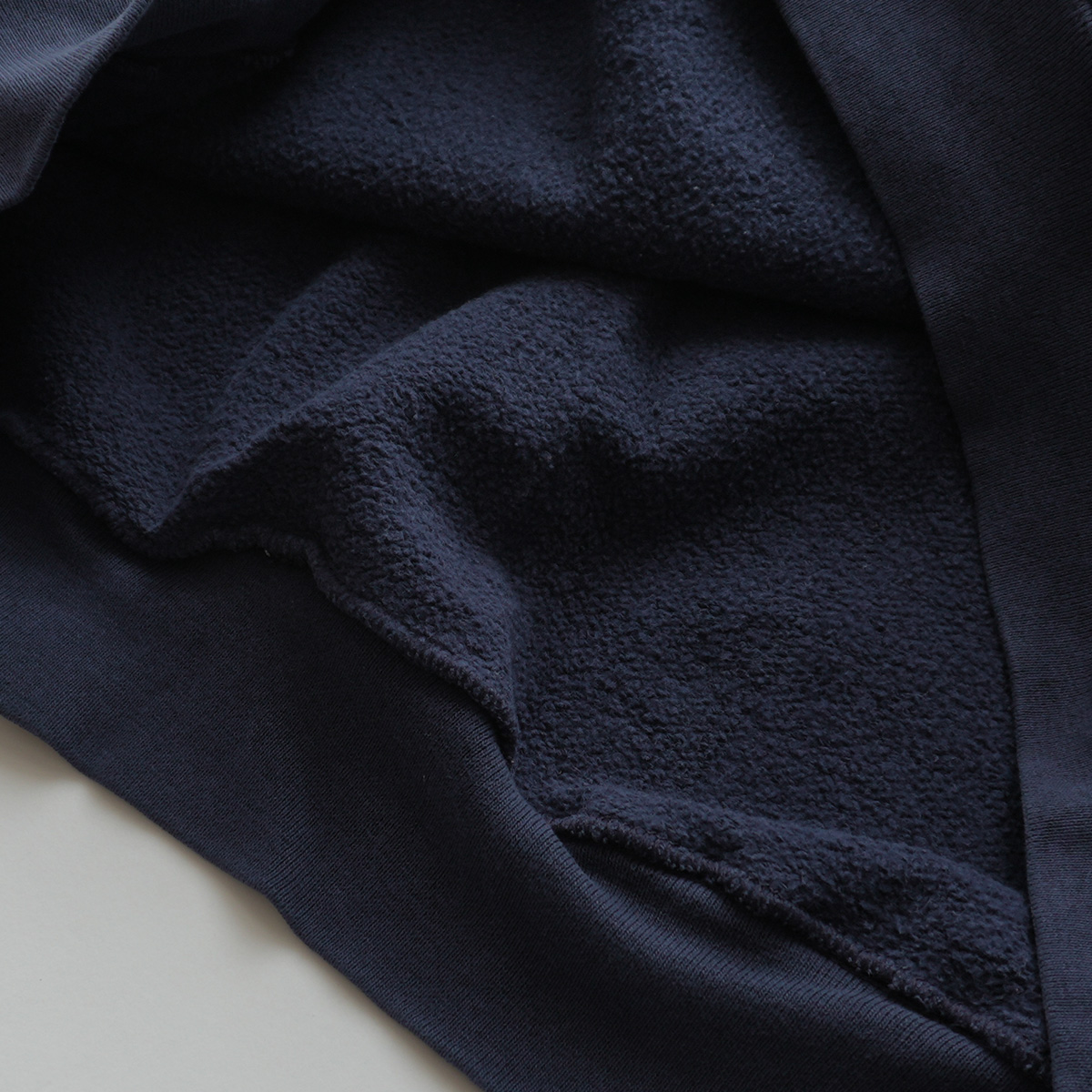 リバースウィーブのような作りではなく、普通のスウェットといえる作りですが、脇部分にリブが付く、動きやすい作りになっています。