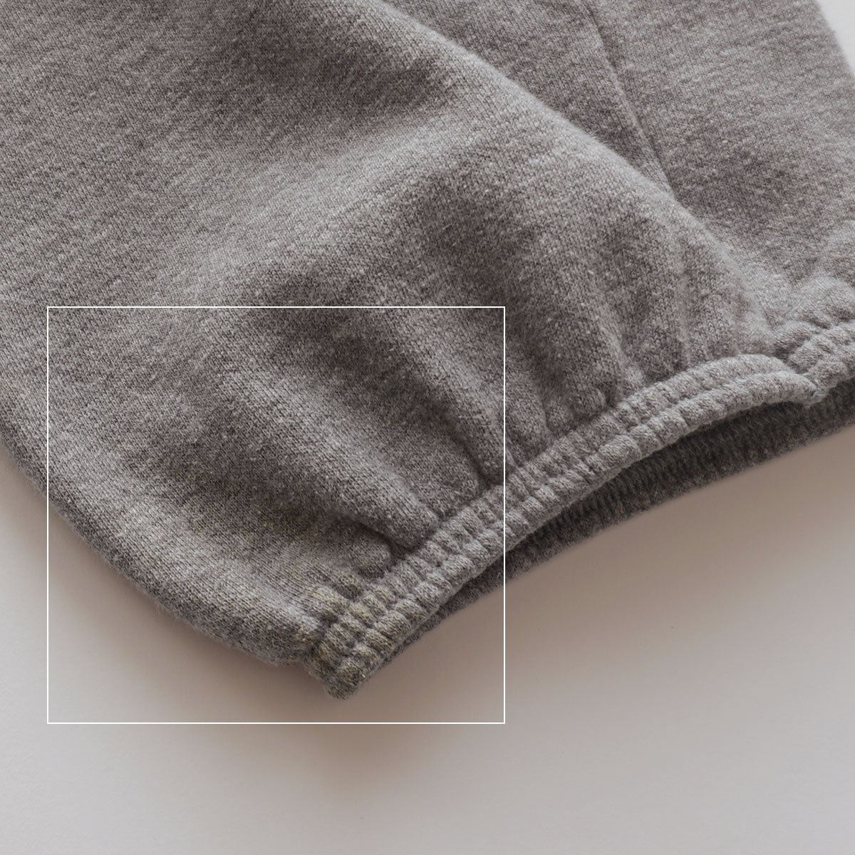 素材はコットンとポリエステル、レーヨンの混ざるスウェット生地で、ふんわりとして柔らかい生地感の物です。