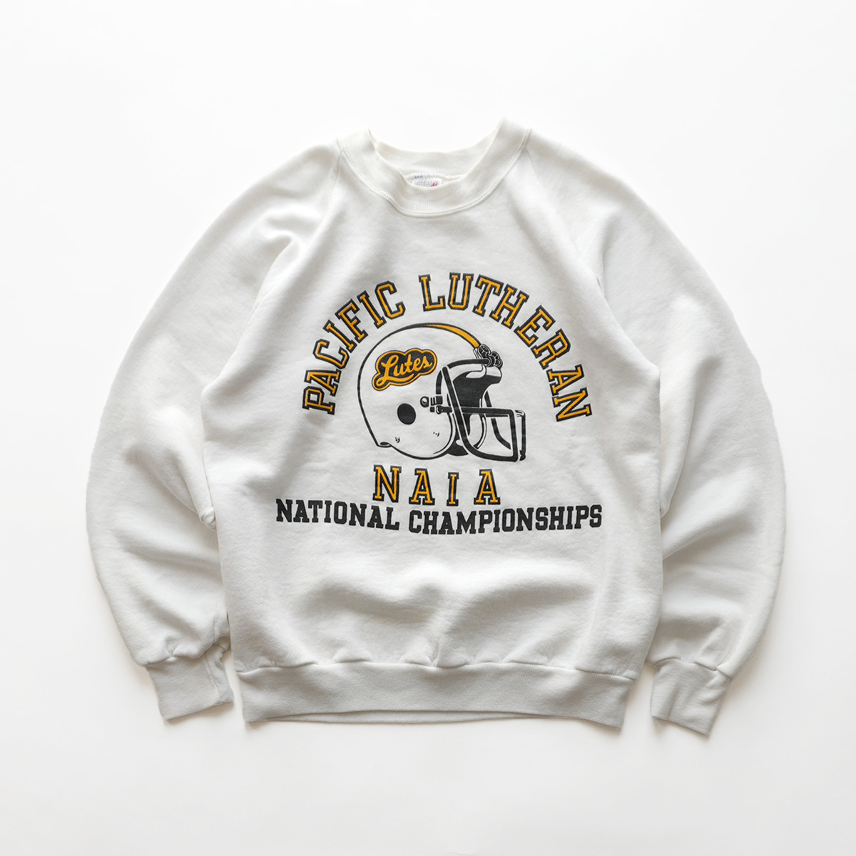〜90's JERZEES PRINT CREW NECK SWEAT "PACIFIC LUTHERAN NAIA" "MADE IN USA"