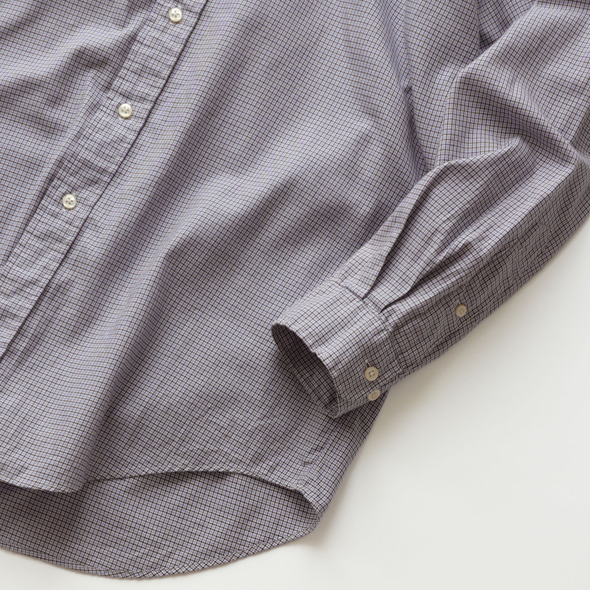 素材は、100%コットンで、滑らかな肌触りの良い生地が使われ、細かなタッターソールチェックのような柄が織り込まれた生地が使われています。