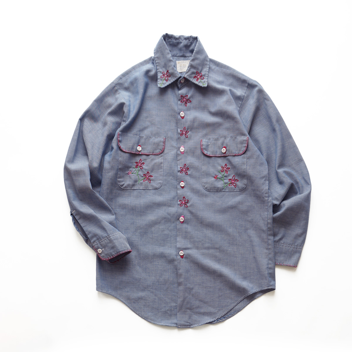 70's BIG MAC COTTON POLYESTER CHAMBRAY HAND EMBROIDERED CUSTOM SHIRT