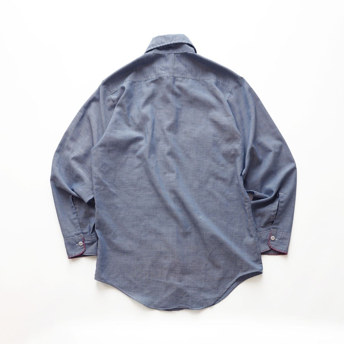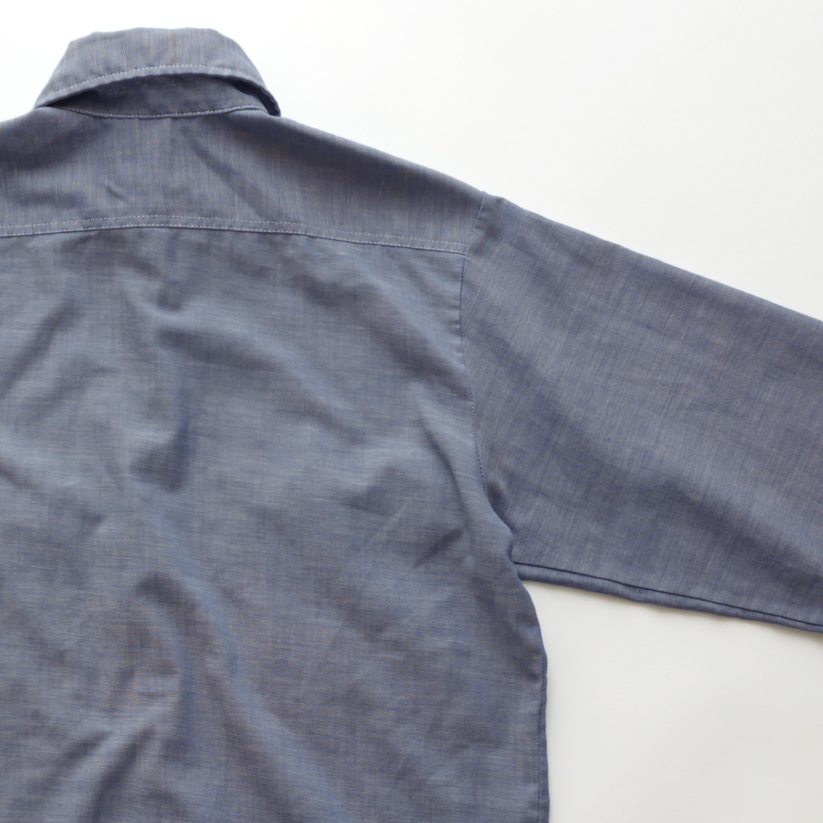 素材はコットンとポリエステルの混紡のシャンブレー地で、薄手で柔らかい生地感の物です。