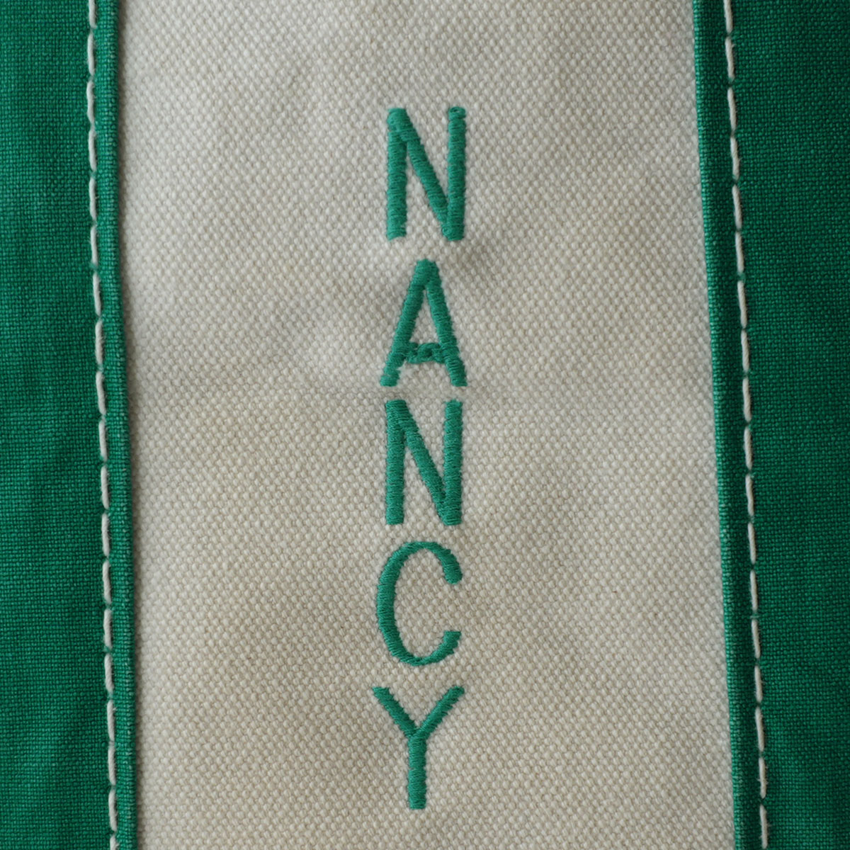 色は定番の白xグリーンで、なめと思われる刺繍が入っています。